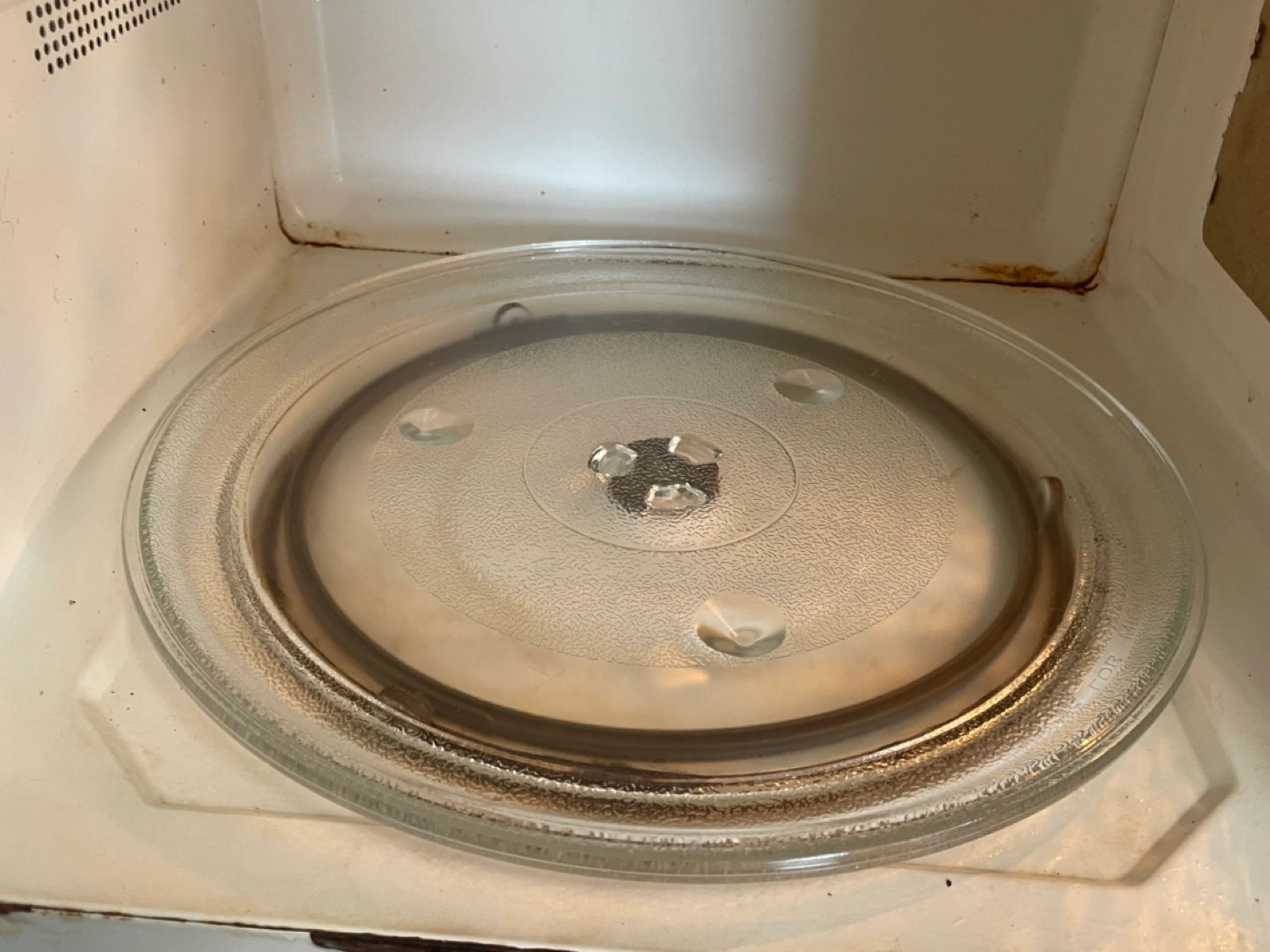 Used Danby microwave. Off-white colour. Glass turntable included. Some staining inside. Functional. Still works well.