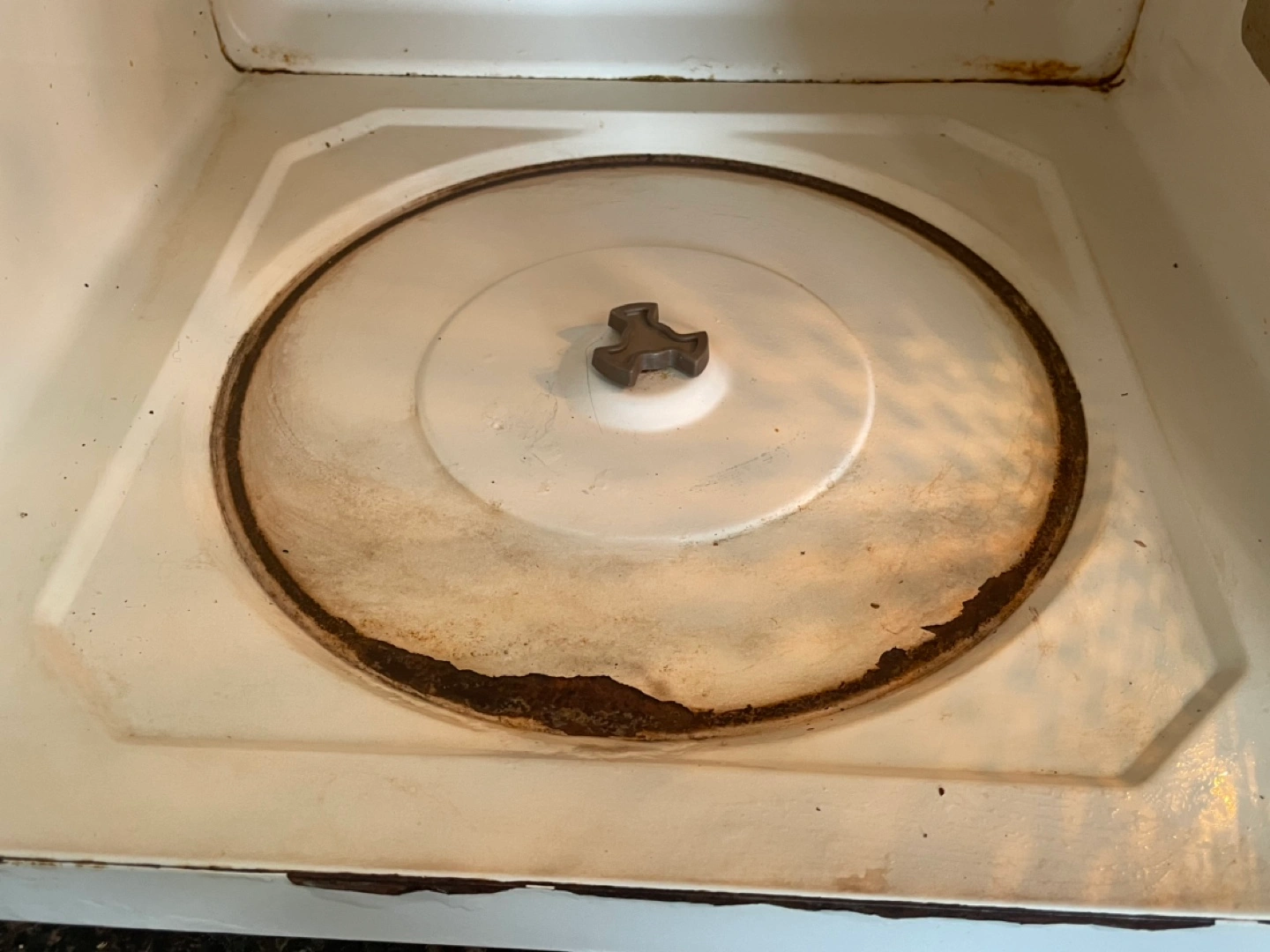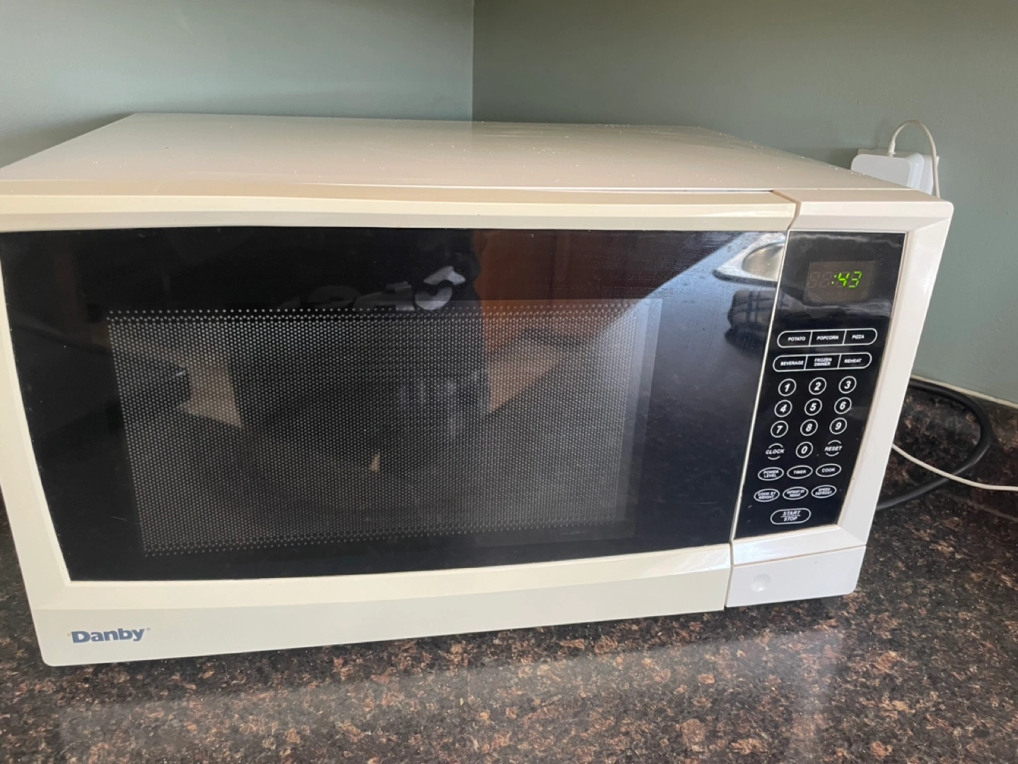 Used Danby microwave. Off-white colour. Glass turntable included. Some staining inside. Functional. Still works well.