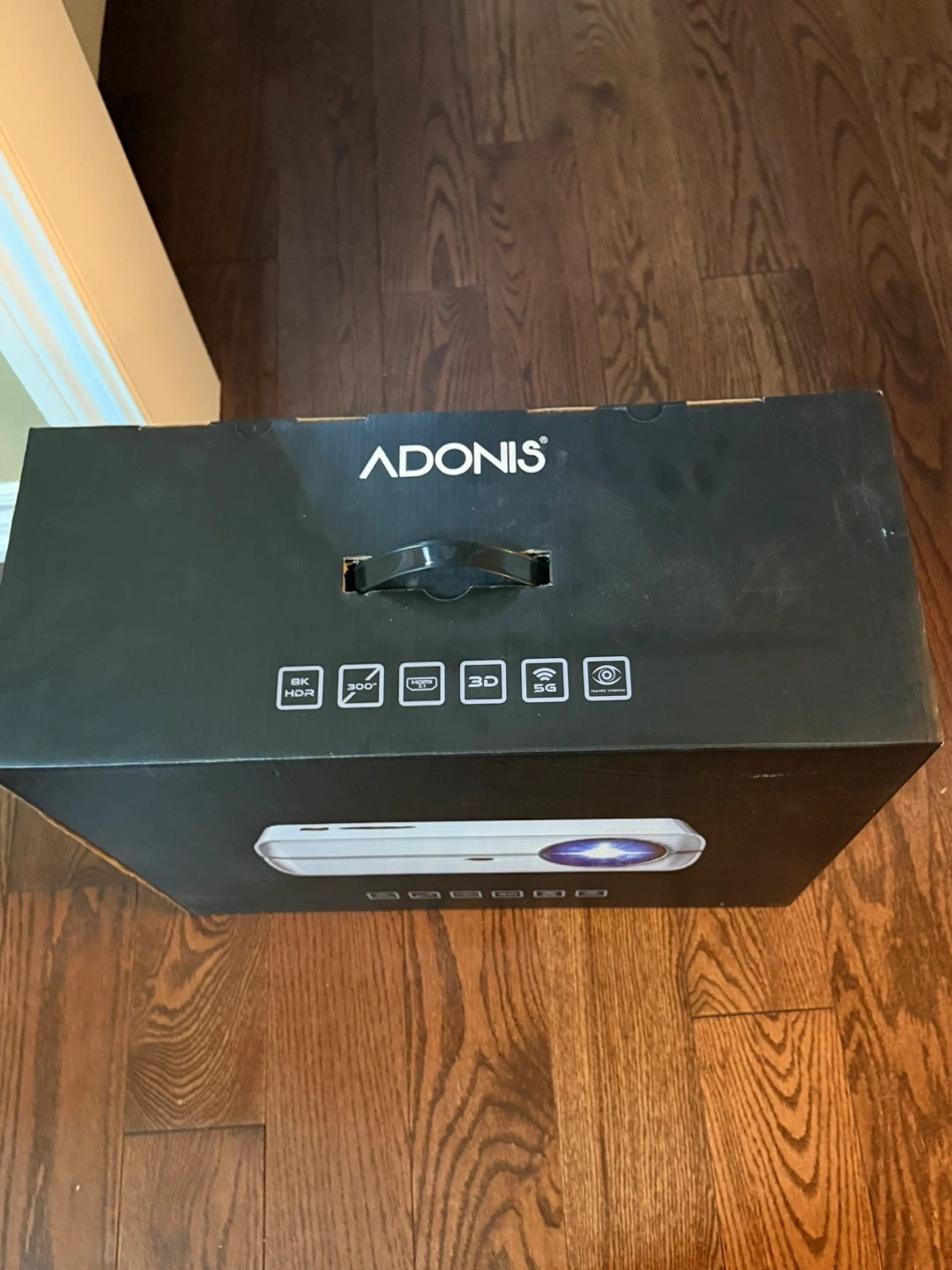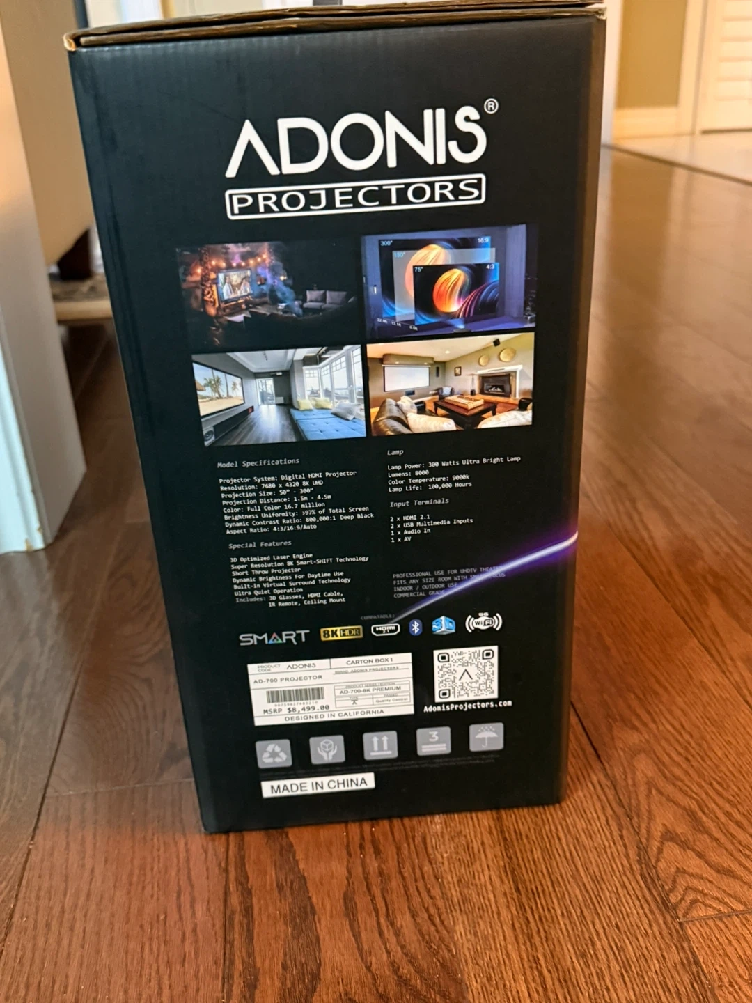 This is an ADONIS AD-700 laser projector with a 4K resolution. It features a 100,000-hour lamp life. Includes a digital HDMI projector.