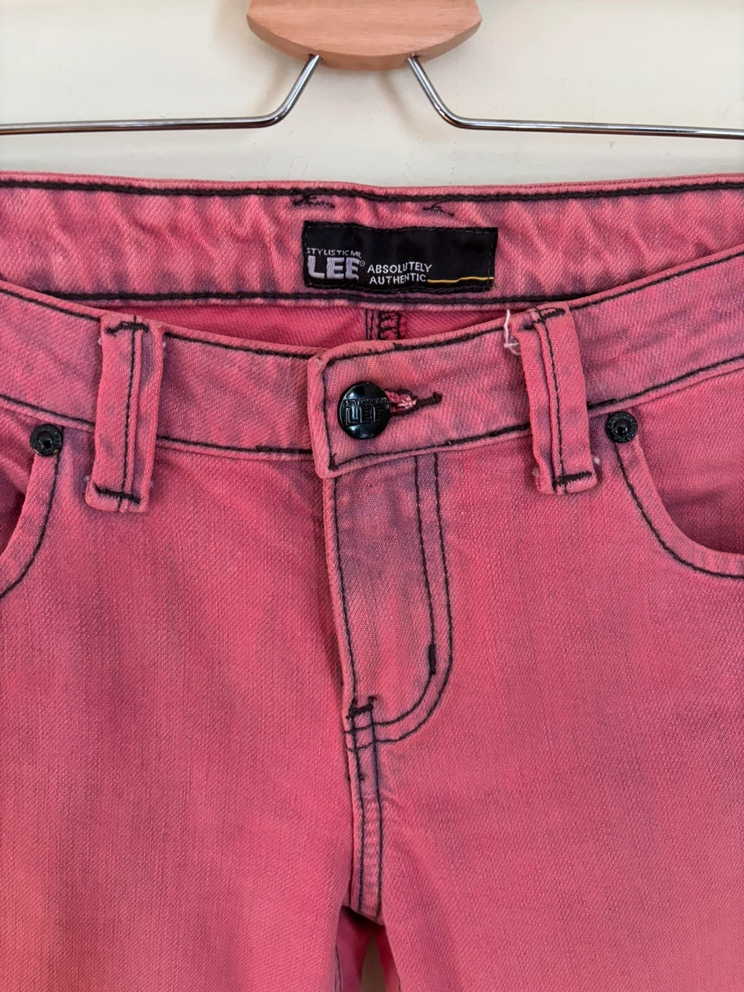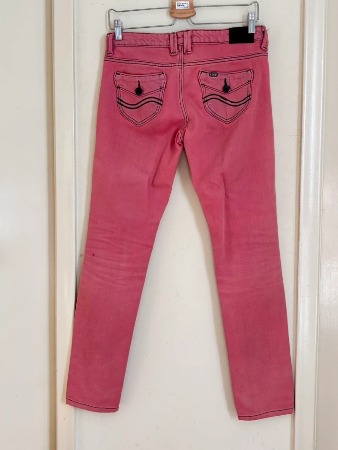 Selling a pair of Lee jeans in a unique pink colour! They're size 29 and made from 100% cotton, making them super comfy. These jeans have a stylish design with detailed stitching and back pocket accents. Perfect for adding a pop of colour to your wardrobe!