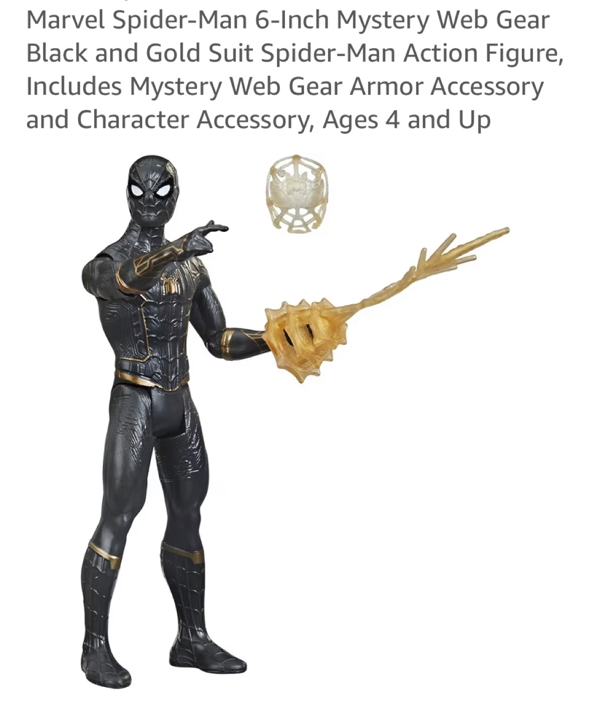 Buy & SellMarvel Spider-Man 6-Inch Black and Gold Suit Action FigureMarvel Spider-Man 6-Inch Black and Gold Suit Action Figure$20This is a Marvel Spider-Man 6-inch action figure in his black and gold suit. It includes mystery web gear accessories. Suitable for ages 4 and up.ConditionNewWHERE TO MEET11655 Bramalea RoadView MapSELLERverifiedJosieTrinity994 reviews0 chats·0 favorites·3 viewsSEND CHAT TO SELLERHi Josie! I’m interested in your listing.Hi Josie! I’m interested in your listing.Get the Karrot app to chatSign In to chat