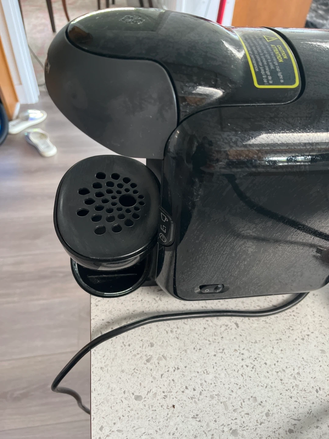 This is a black Bosch Tassimo coffee machine. It uses T-discs for brewing. Works well and is ready for a new kitchen!