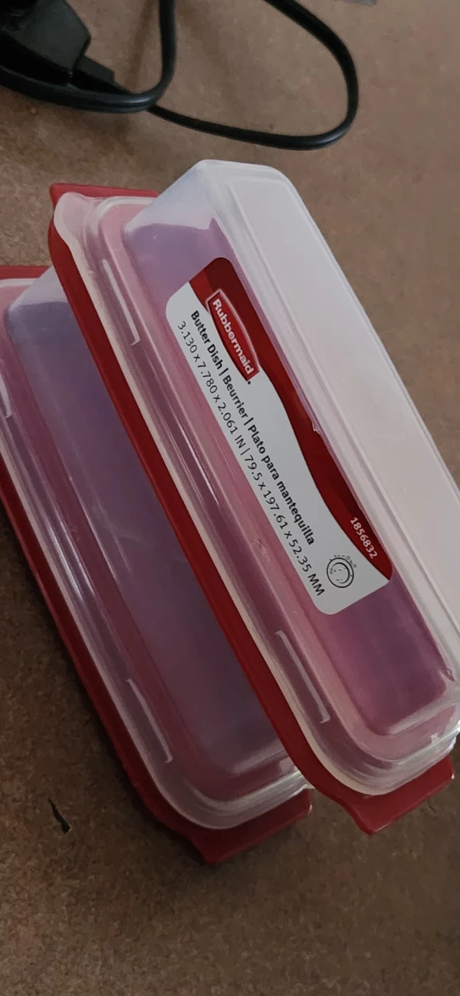 This is a Rubbermaid butter dish. It measures 3.130 x 7.780 x 2.061 inches. This dish is useful for storing butter in the fridge.