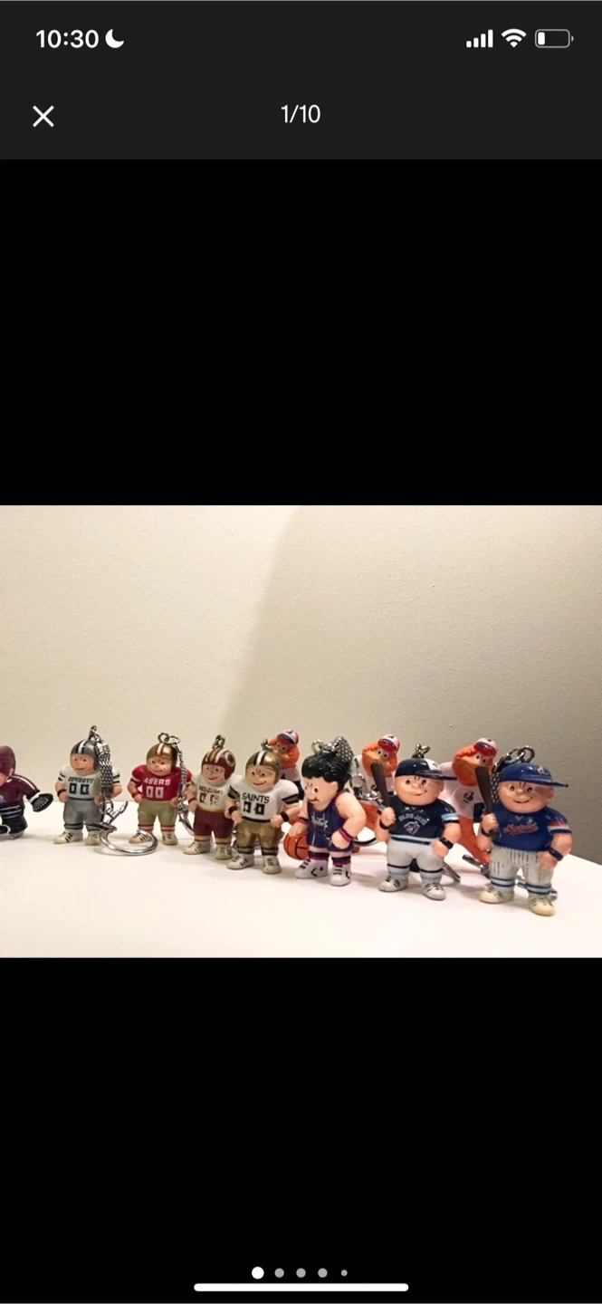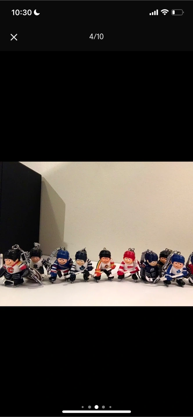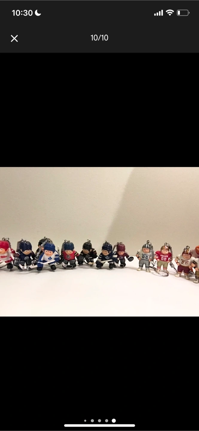 This is a lot of 10 sports player keychains. It includes hockey players in various team jerseys, football players, and baseball players. They're great for sports fans! 10$ each