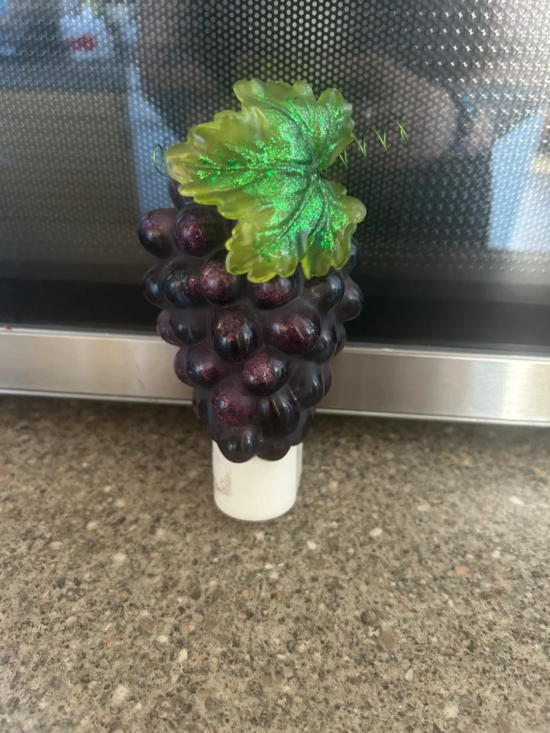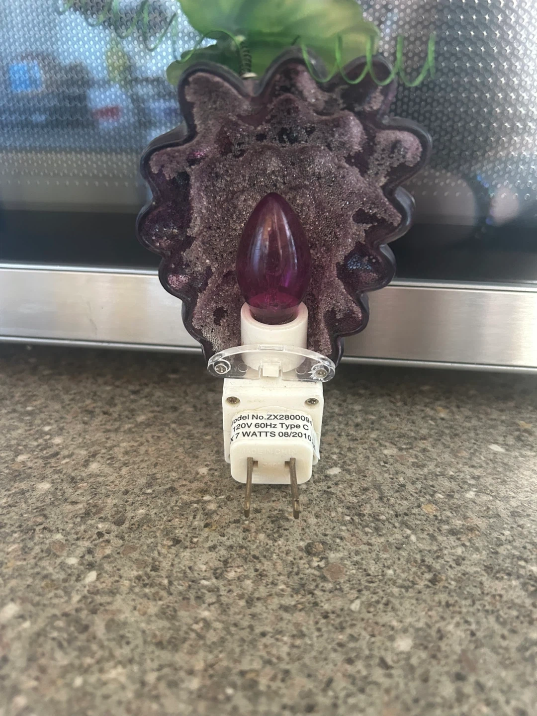 Adds a touch of whimsy to any room! This decorative night light is shaped like a bunch of grapes with a sparkly green leaf accent. It plugs directly into a standard outlet.