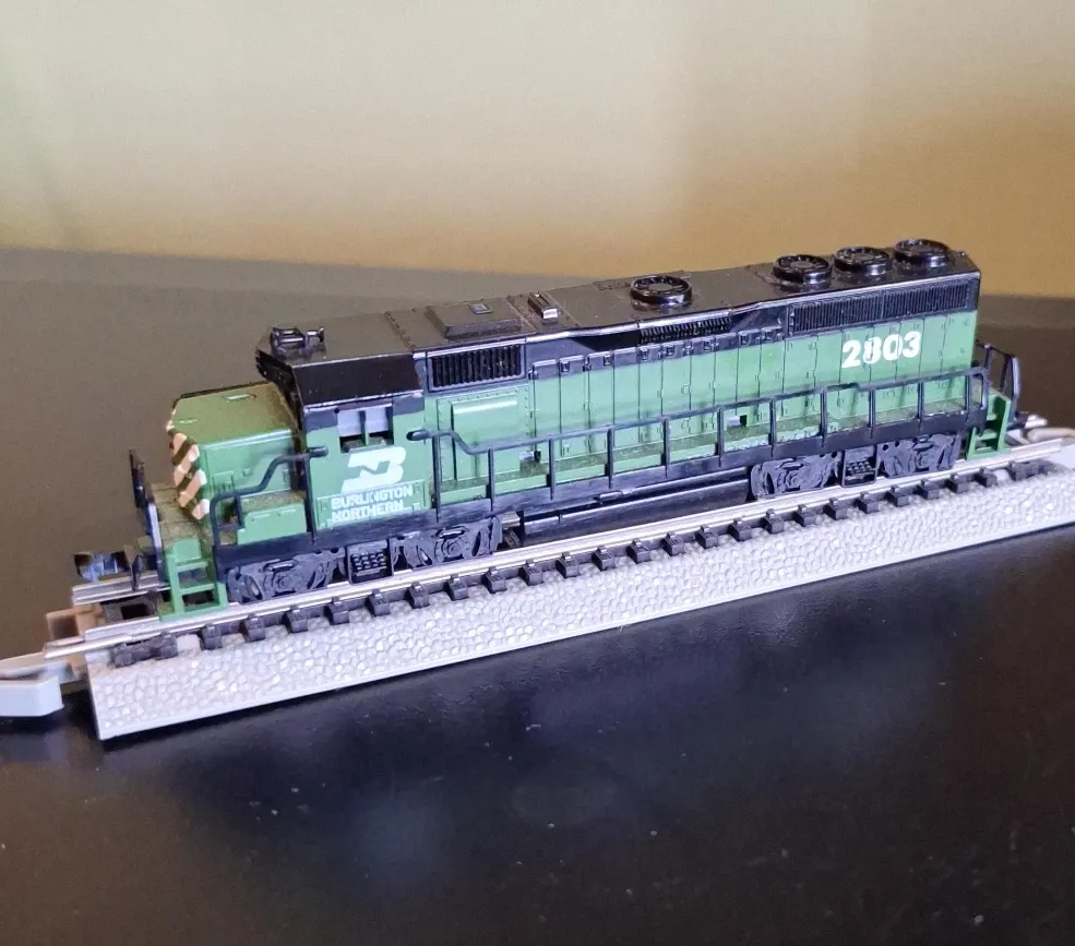Burlington Northern N scale model train locomotive. Features the number 2803. It's a detailed model for collectors. Great for display! it needs tires on the back wheels otherwise it makes a good dummie locomotive