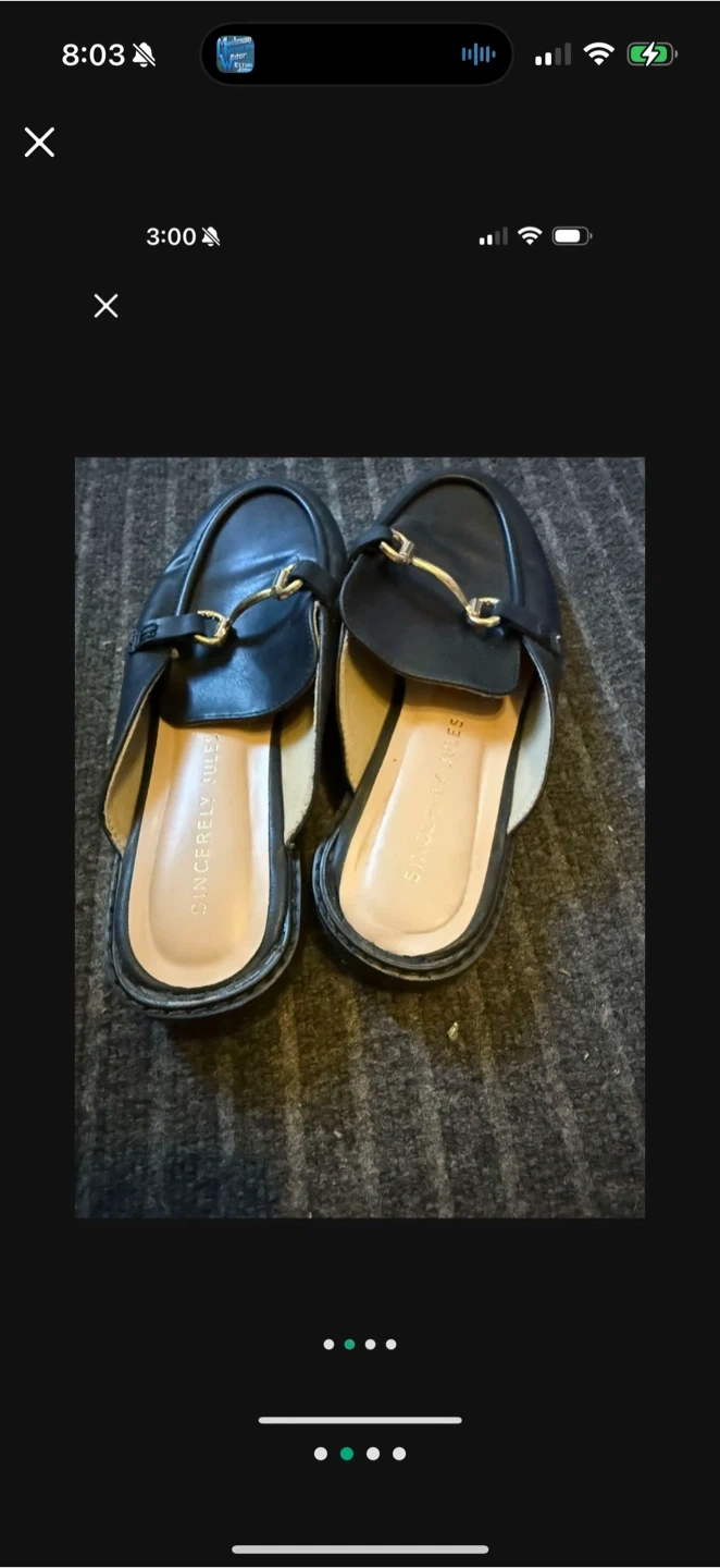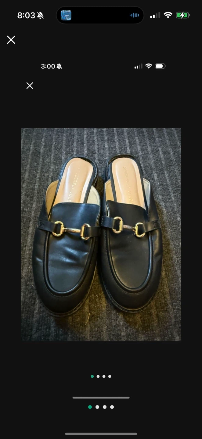 Selling a pair of black mule loafers from SINCERELY JULES! They are a size 5 and have a gold-toned horsebit detail on the upper. Perfect for a casual or dressed-up look!