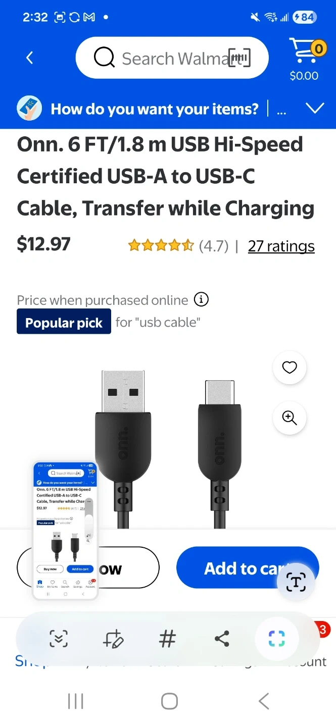 I'm selling a brand new Onn. USB-A to USB-C cable! It's 6 ft/1.8 m long and transfers data while charging. Comes in the original packaging