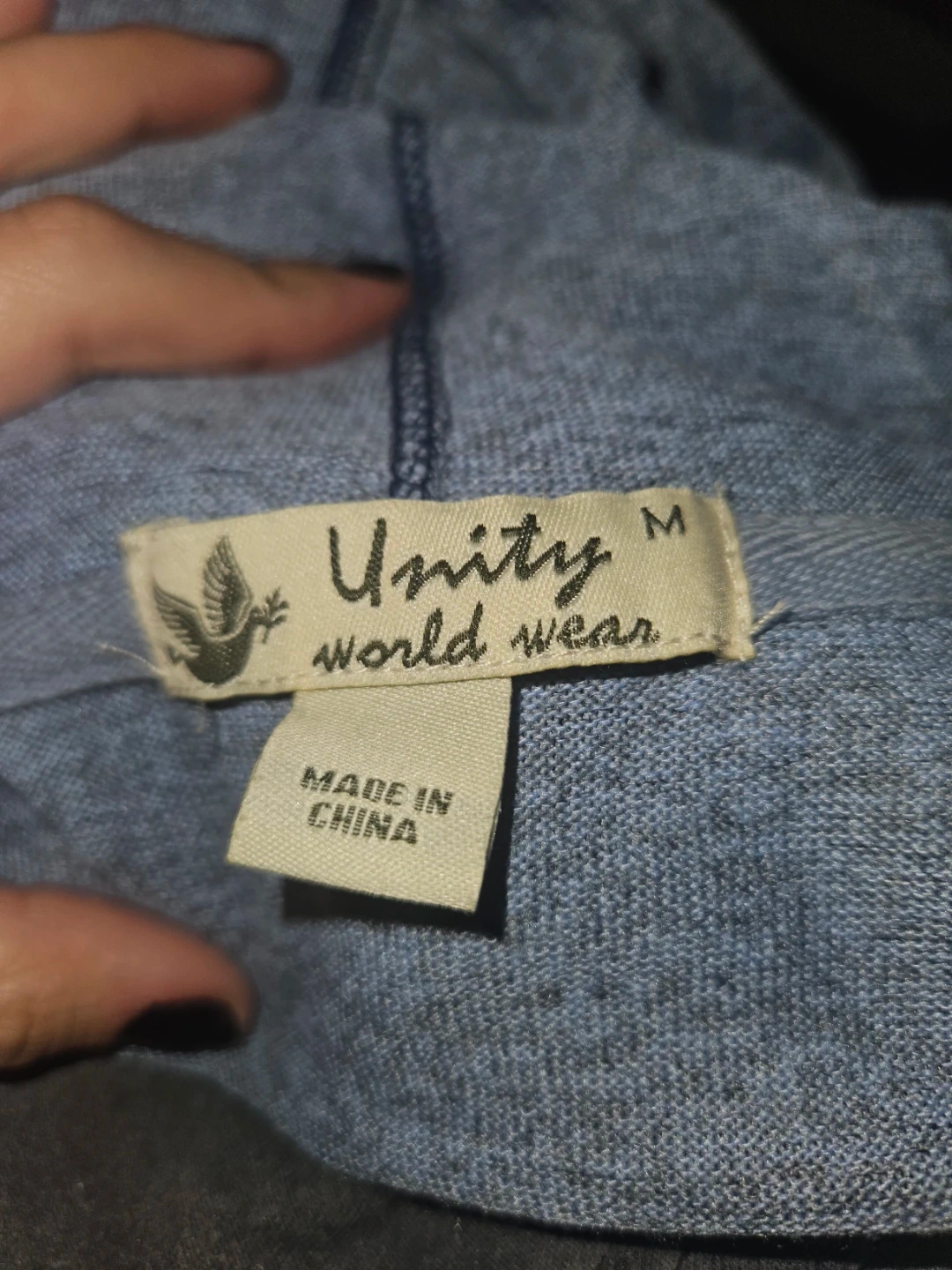 This Unity World Wear zip-up hoodie features a striking graphic design on the front. It's a size medium and made with a comfortable blend of materials. The full zip closure makes it easy to wear.