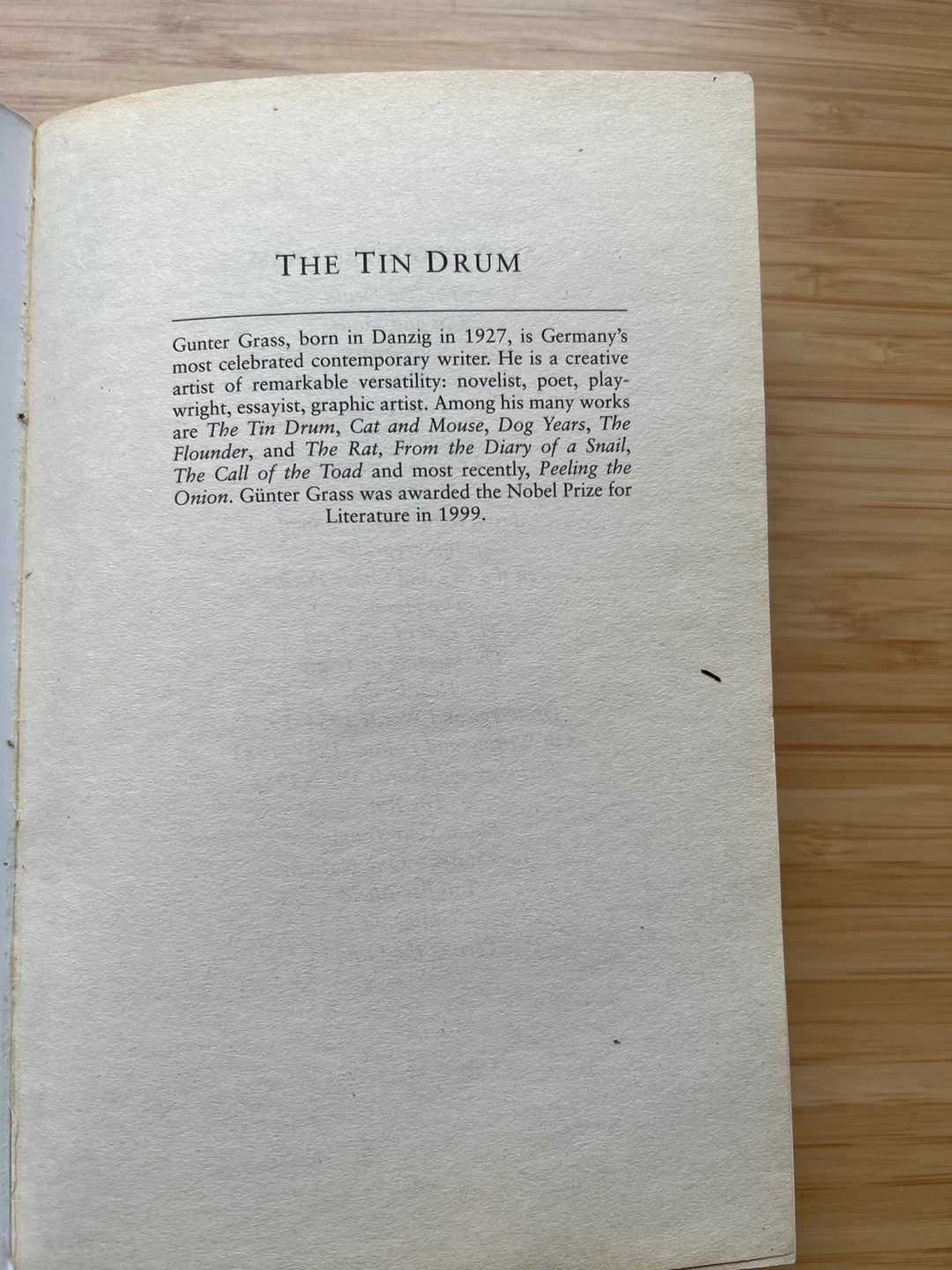 Selling a copy of "The Tin Drum" by Günter Grass. It's part of the Vintage Classics series. A captivating read!