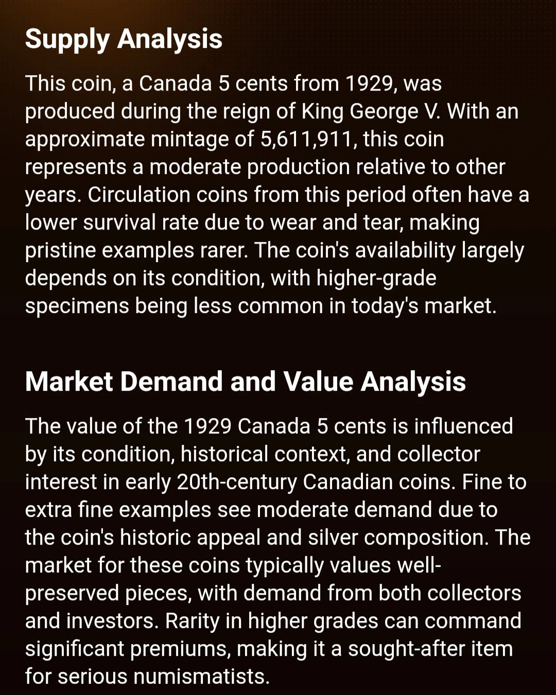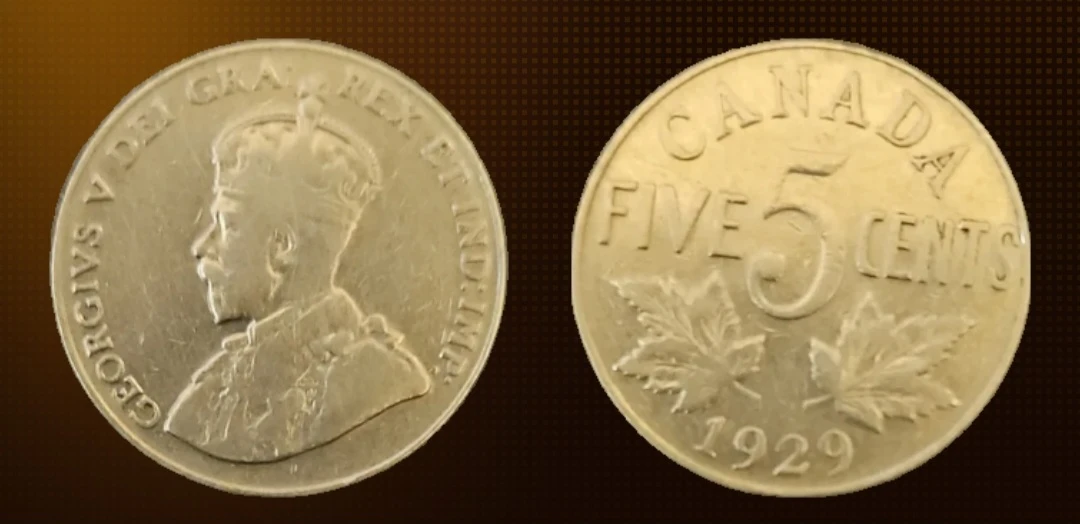 1929 Canada 5 Cent Coin