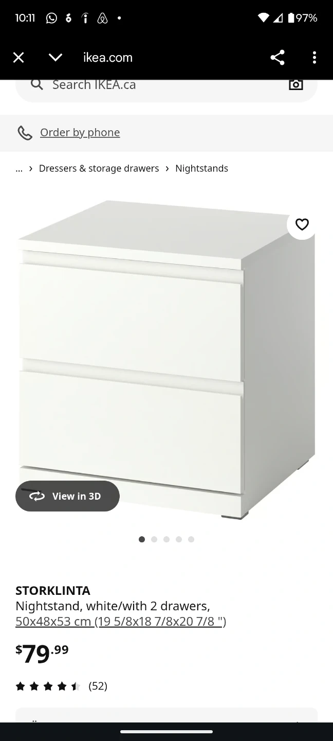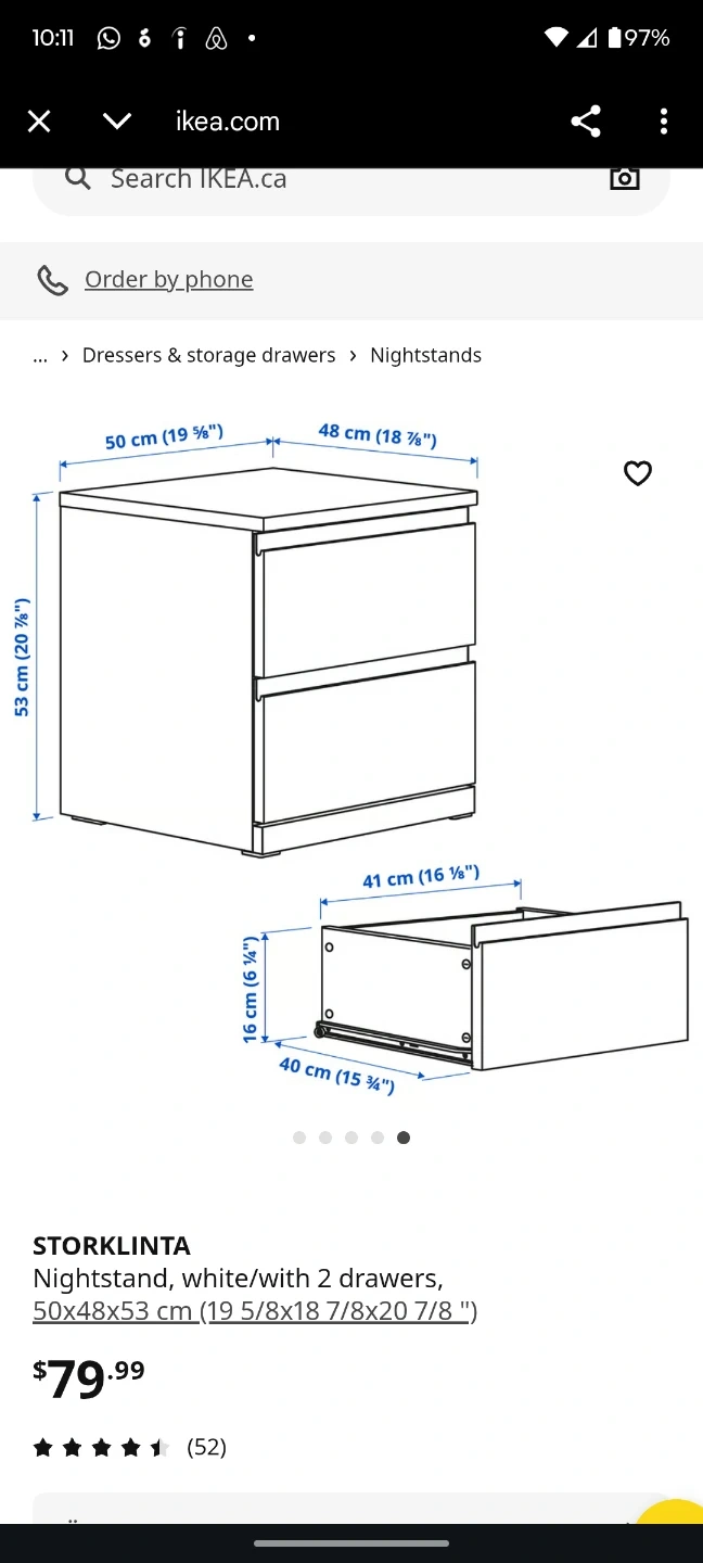 Selling a white IKEA STORLINTA nightstand with two drawers. It's in great condition and ready for a new home! The dimensions are 50x48x53 cm (19 5/8x18 7/8x20 7/8 ").
