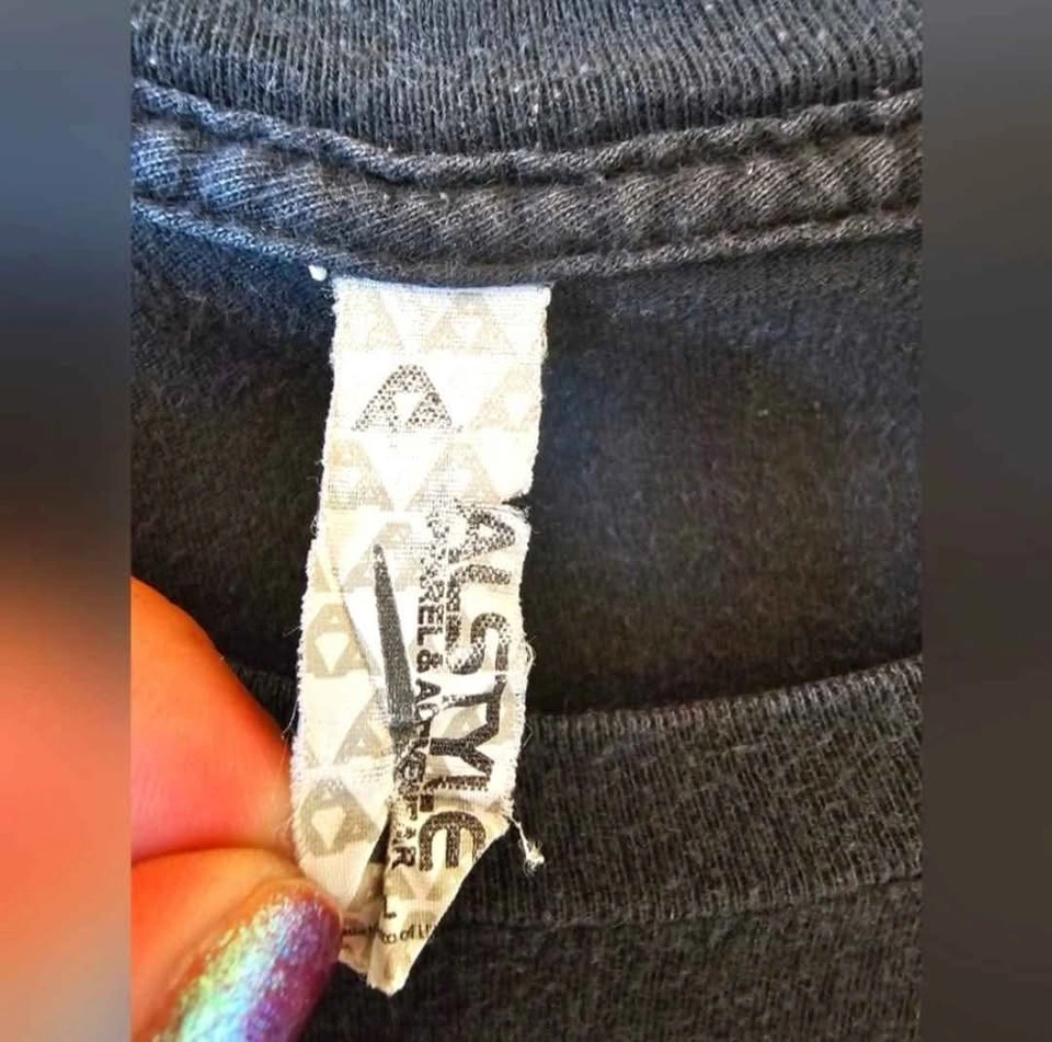 A perfectly worn in vintage black tee, soft and with just the right amount of fading. Shirt features a skull with a mohawk and the word "Revolt" printed in a gothic font. Looks great as is or chopped up into a crop top, for that 90s pop punk/ mall goth aesthetic!