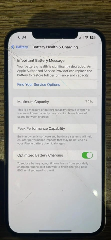 Selling my iPhone 12 Pro Max 128GB in Gold. Phone works perfectly. Face ID, cameras, speakers, buttons, Wi-Fi, and cellular all work normally. Only issue is a cracked screen. Battery 72% health (shows “Service” in settings). Includes Lightning charging cable. Box is not included. Unlocked & works with any carrier. Perfect for someone who wants a fully working Pro Max and is okay replacing the screen. Screen replacement for this model is about $120 to $150 locally, so it’s still a great deal if you want a Pro Max at a lower price. Feel free to message if you have any questions!