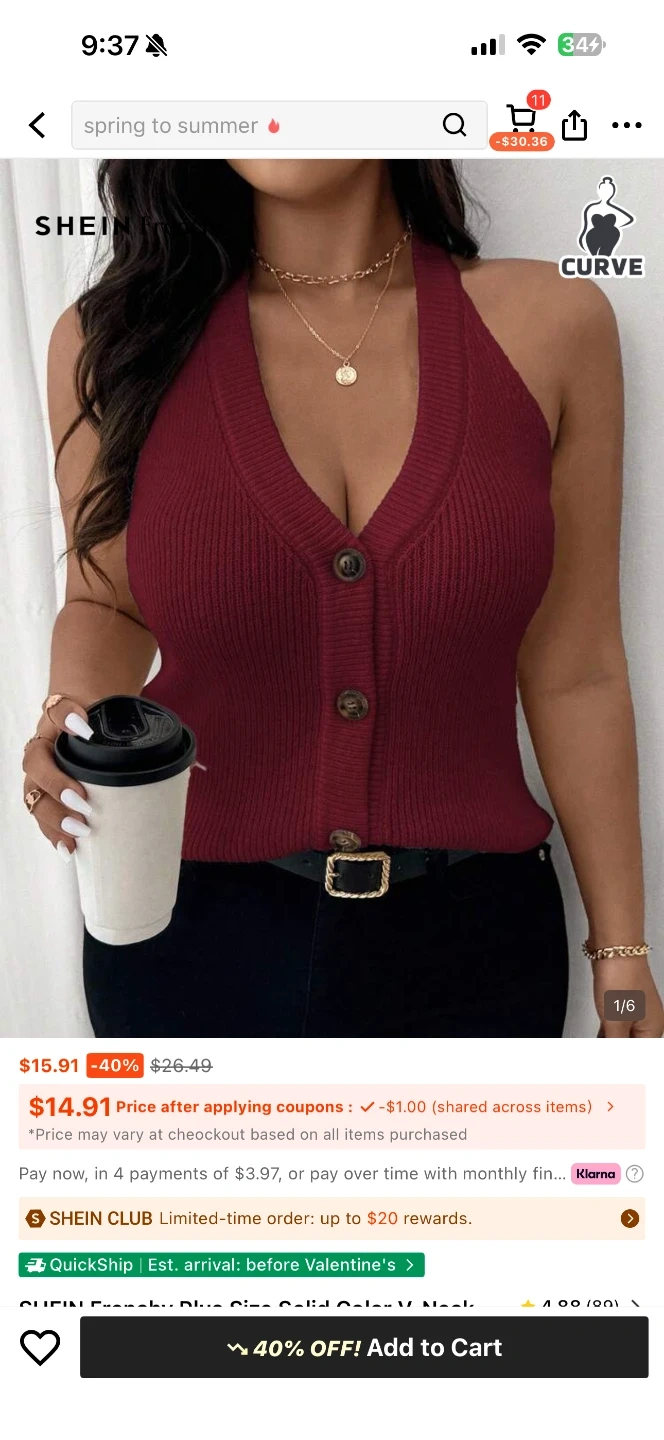 Buy & SellSHEIN Curve Ribbed Knit Halter TopSHEIN Curve Ribbed Knit Halter Top$50SHEIN Curve ribbed knit halter top with button details. Maroon color. Multiple all for one price. Never worn wife missed return date. ConditionNewSizeXL, XXL WHERE TO MEETCheck LocationView MapSELLERverifiedjhonDMiddle Village842 reviews0 chats·0 favorites·11 viewsSEND CHAT TO SELLERHi jhonD! I’m interested in your listing.Hi jhonD! I’m interested in your listing.Get the Karrot app to chatSign In to chat