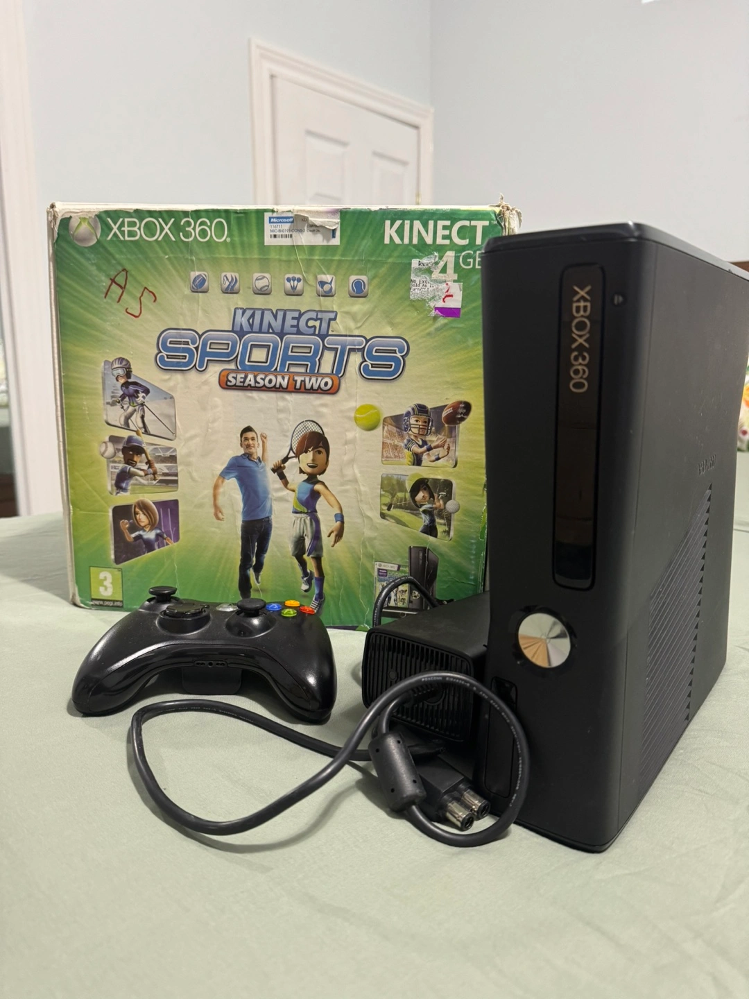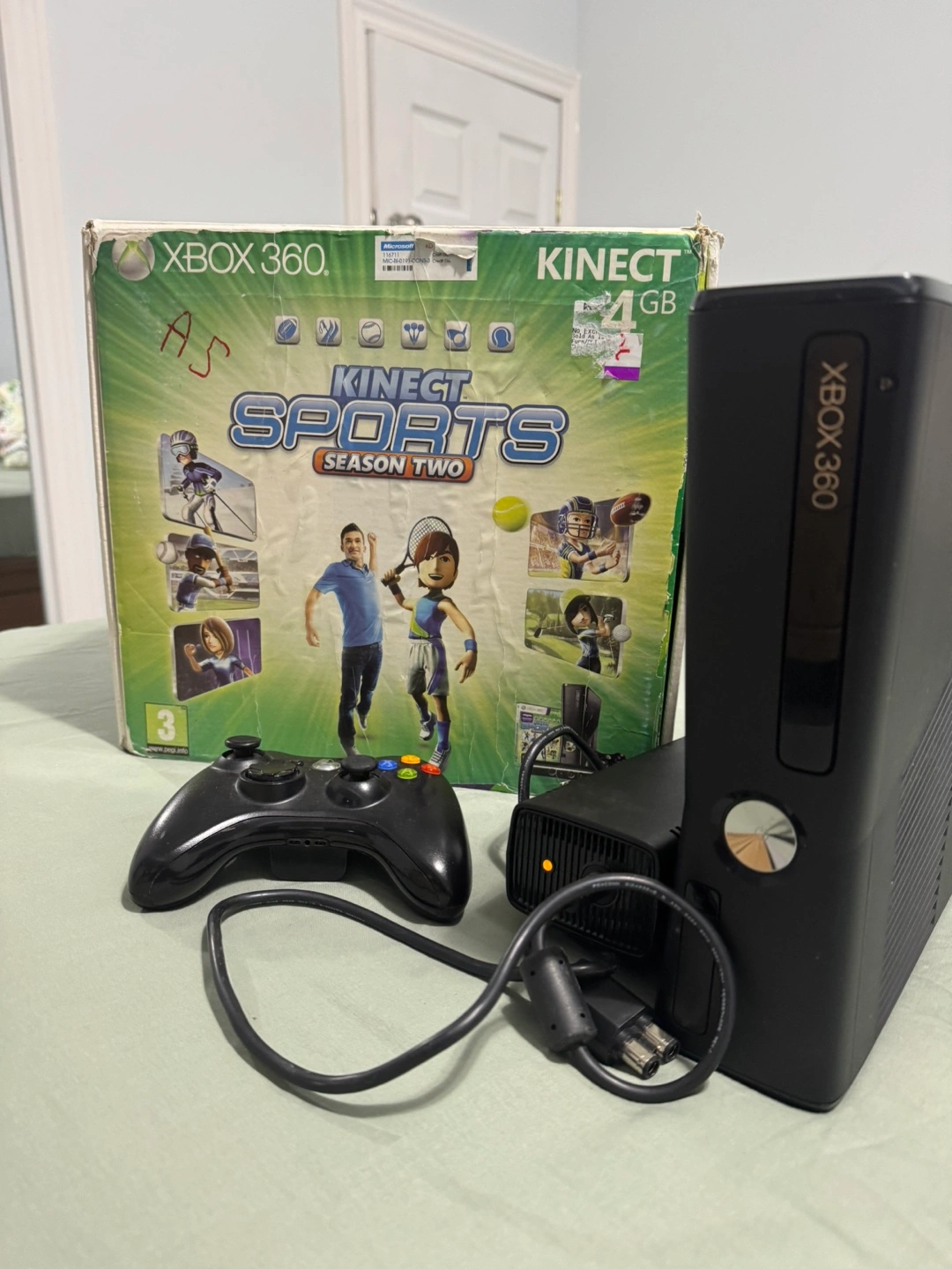 Selling an Xbox 360 4GB console! It comes with the Kinect Sports game, a controller, and the power adapter. Its a modded system with 20plus games