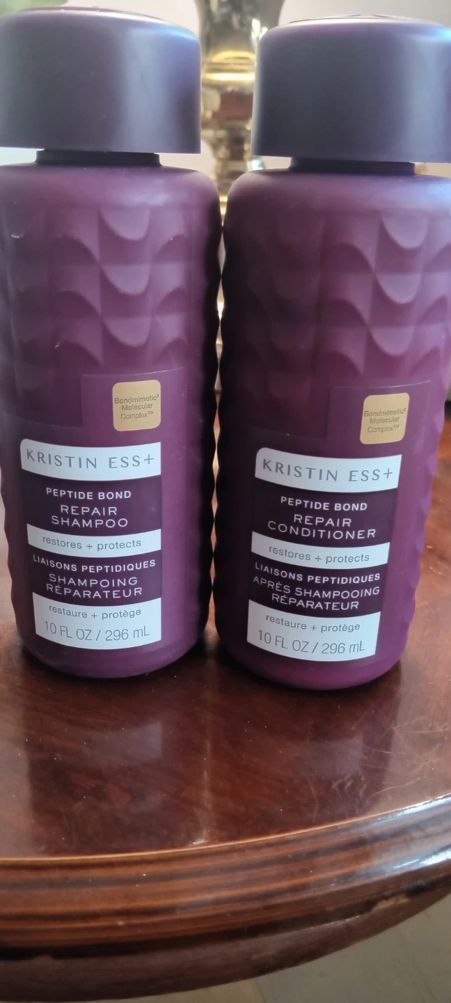 This set includes Kristin Ess+ Peptide Bond Repair Shampoo and Conditioner. Each bottle is 10 fl oz (296 mL). They're formulated with Bondmimetictm Molecular Complex to restore and protect hair.