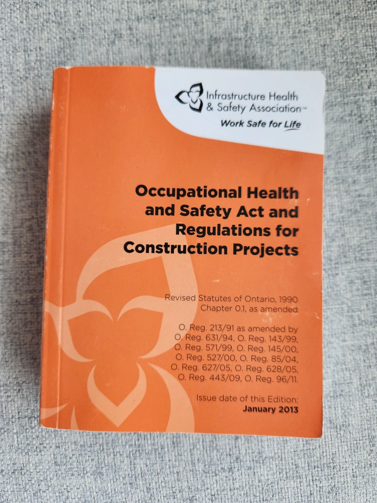 This book is a revised statutes of Ontario, 1990 and covers the Occupational Health and Safety Act and Regulations for Construction Projects. It was issued in January 2013 and covers regulations up to O. Reg. 96/11.