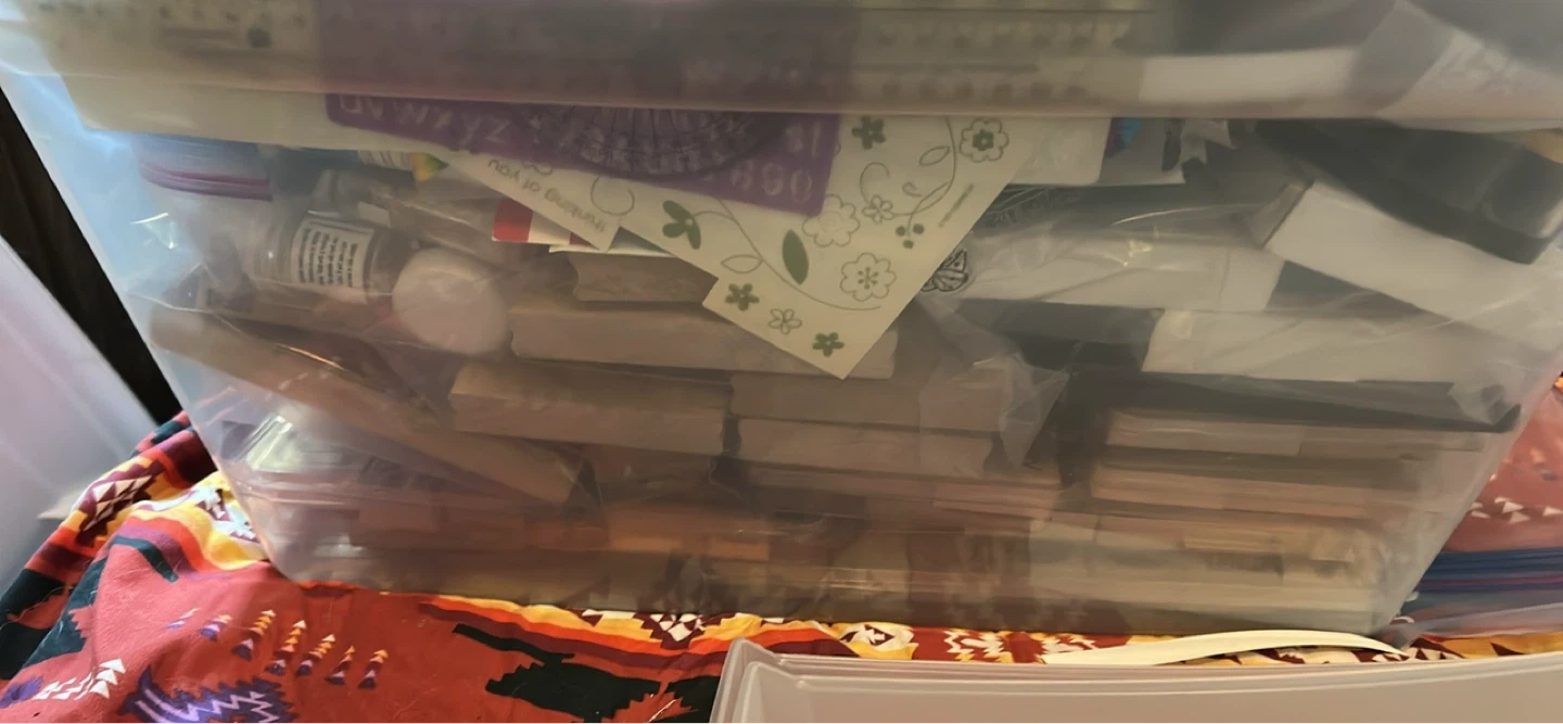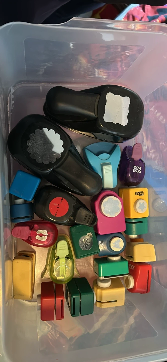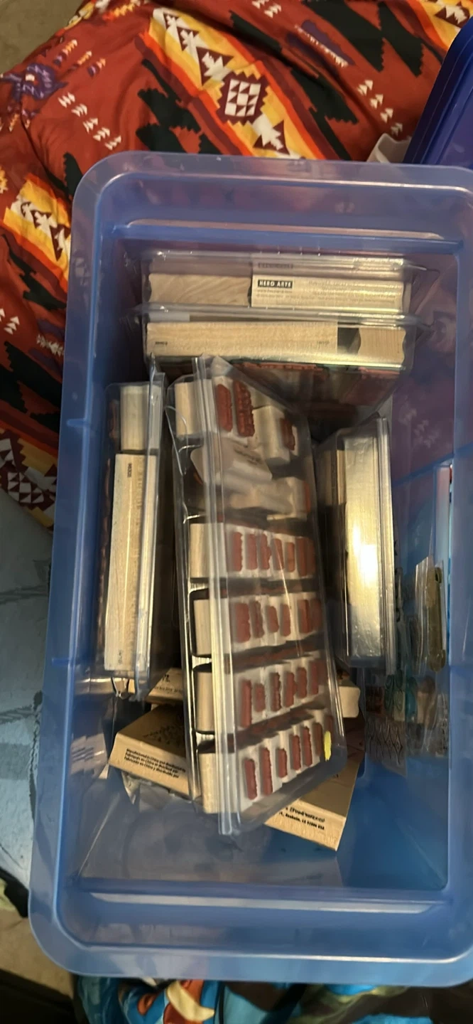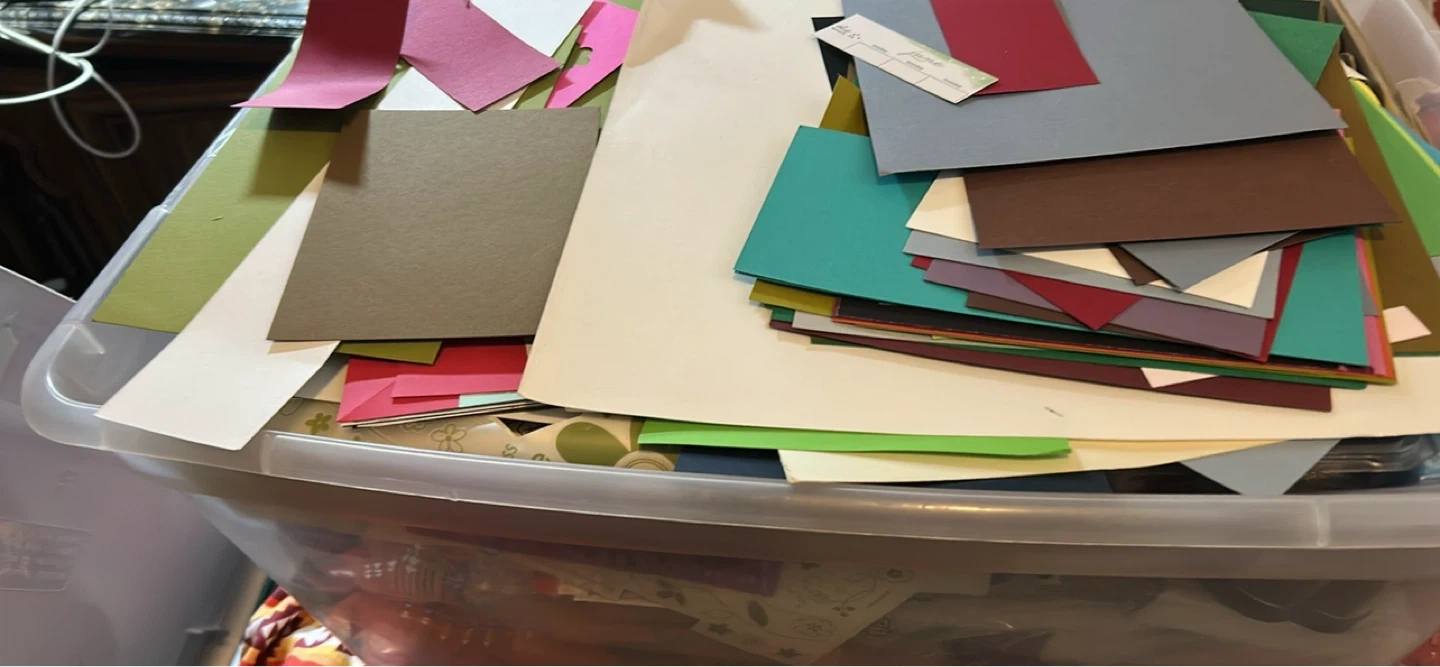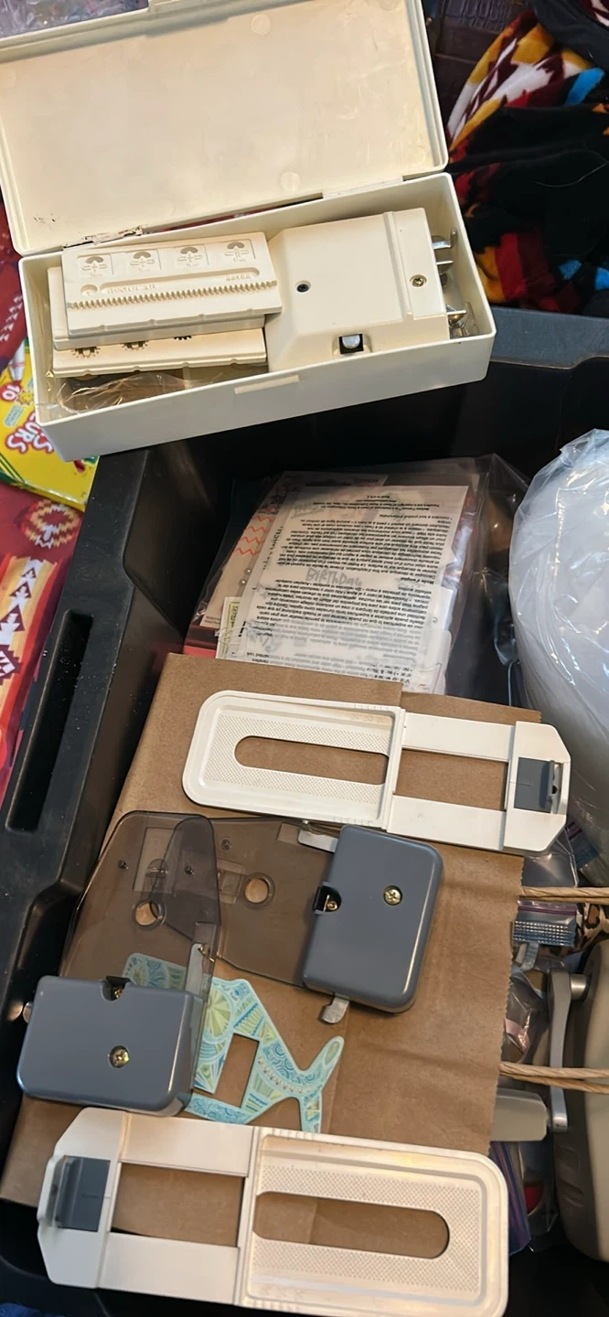 Includes a Cuttlebug die-cutting and embossing machine with accessories. A large bin of various cardstock papers and stamps are also included. Great for all your scrapbooking and card-making projects!