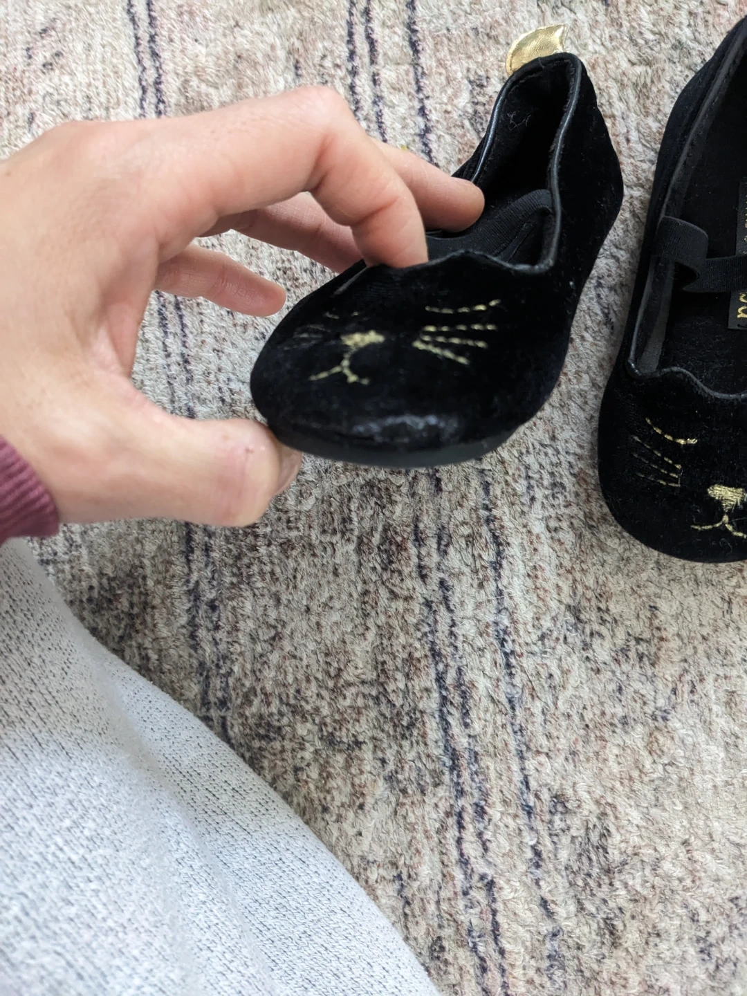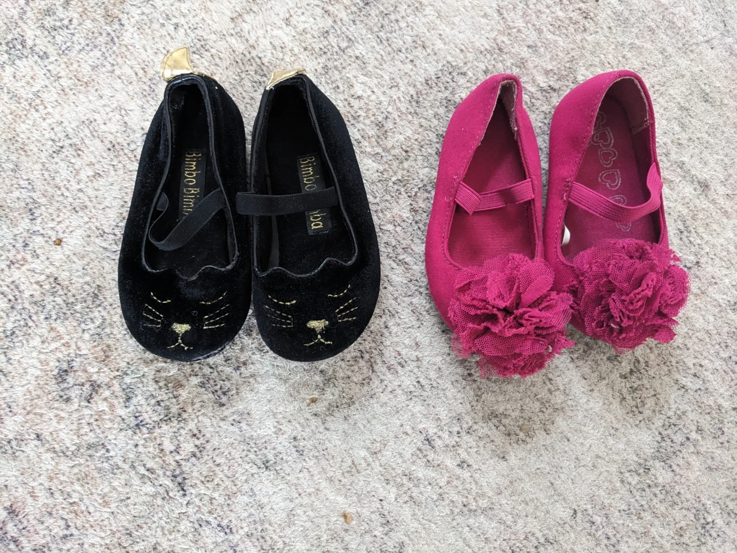 Kids' Black Velvet Cat Flats & Pink Ballet Flats - Size 5-6