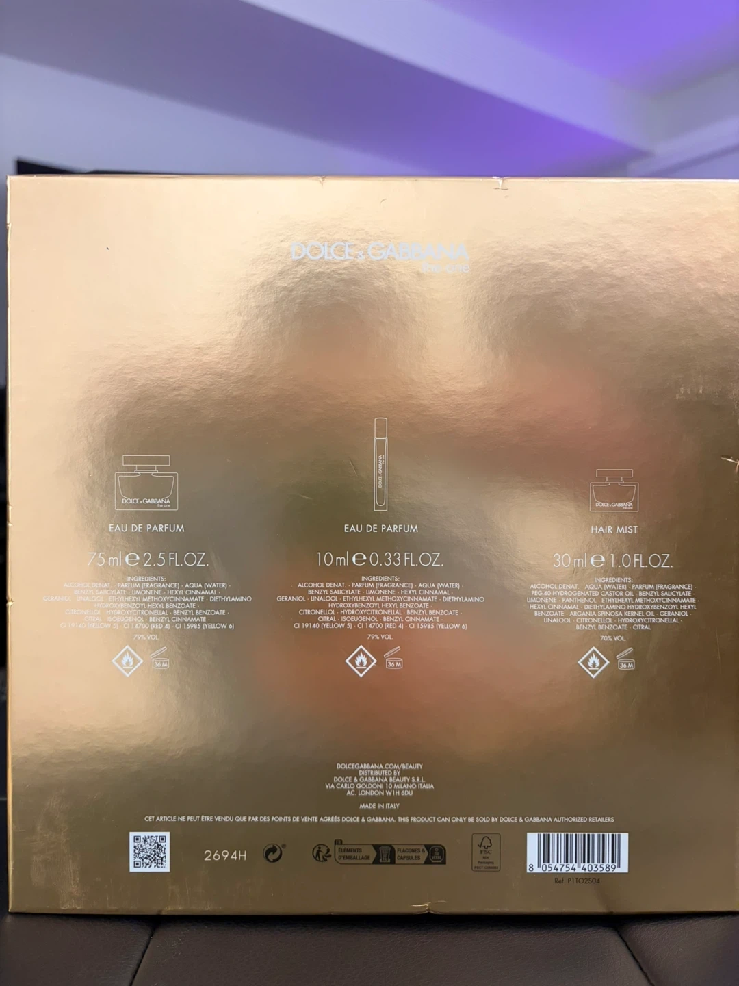 Selling a Dolce & Gabbana The One Eau de Parfum Gift Set that’s brand new in box. The gift set includes Eau de Parfum (75ml) and Eau de Parfum (10ml). It also contains Hair Mist (30ml). Makes a lovely present!