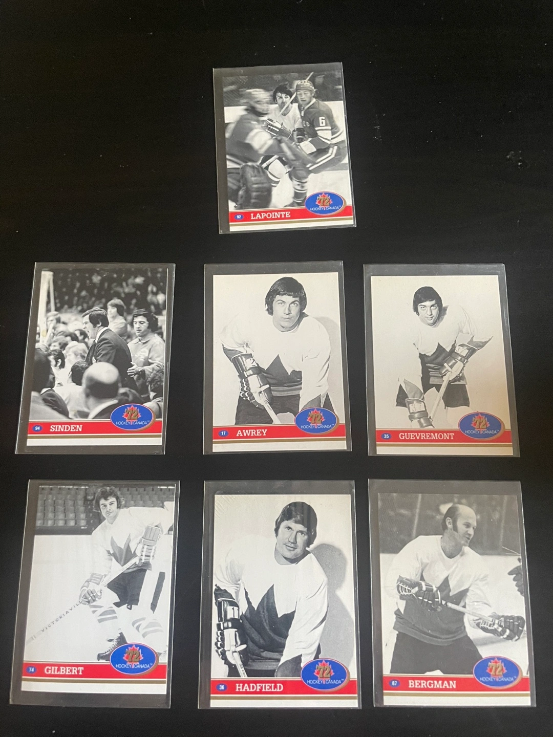 Selling a collection of Hockey Canada trading cards. Includes players Lapointe, Sinden, Awrey, Guevremont, Gilbert, Hadfield and Bergman. Great for any hockey fan!
