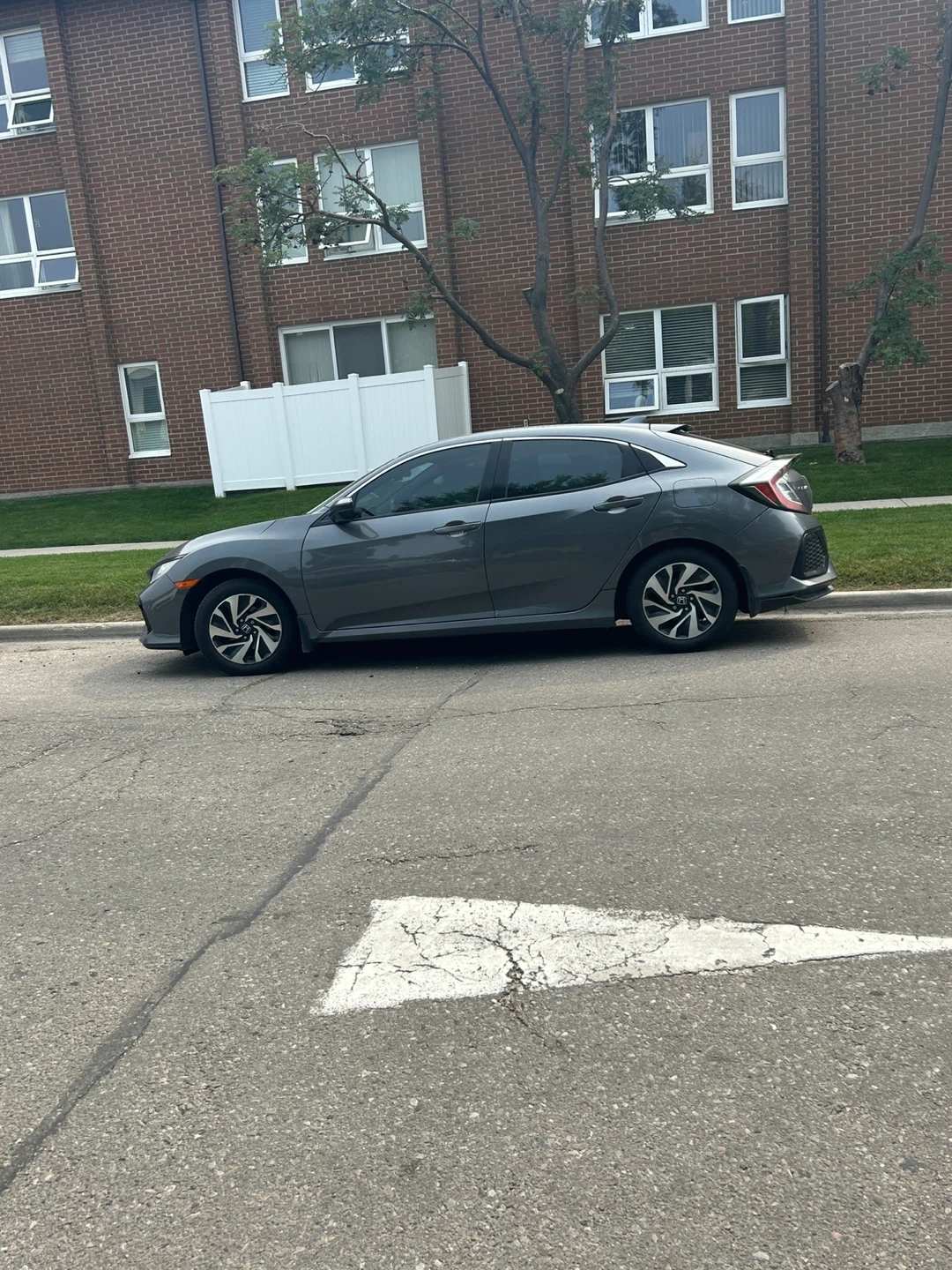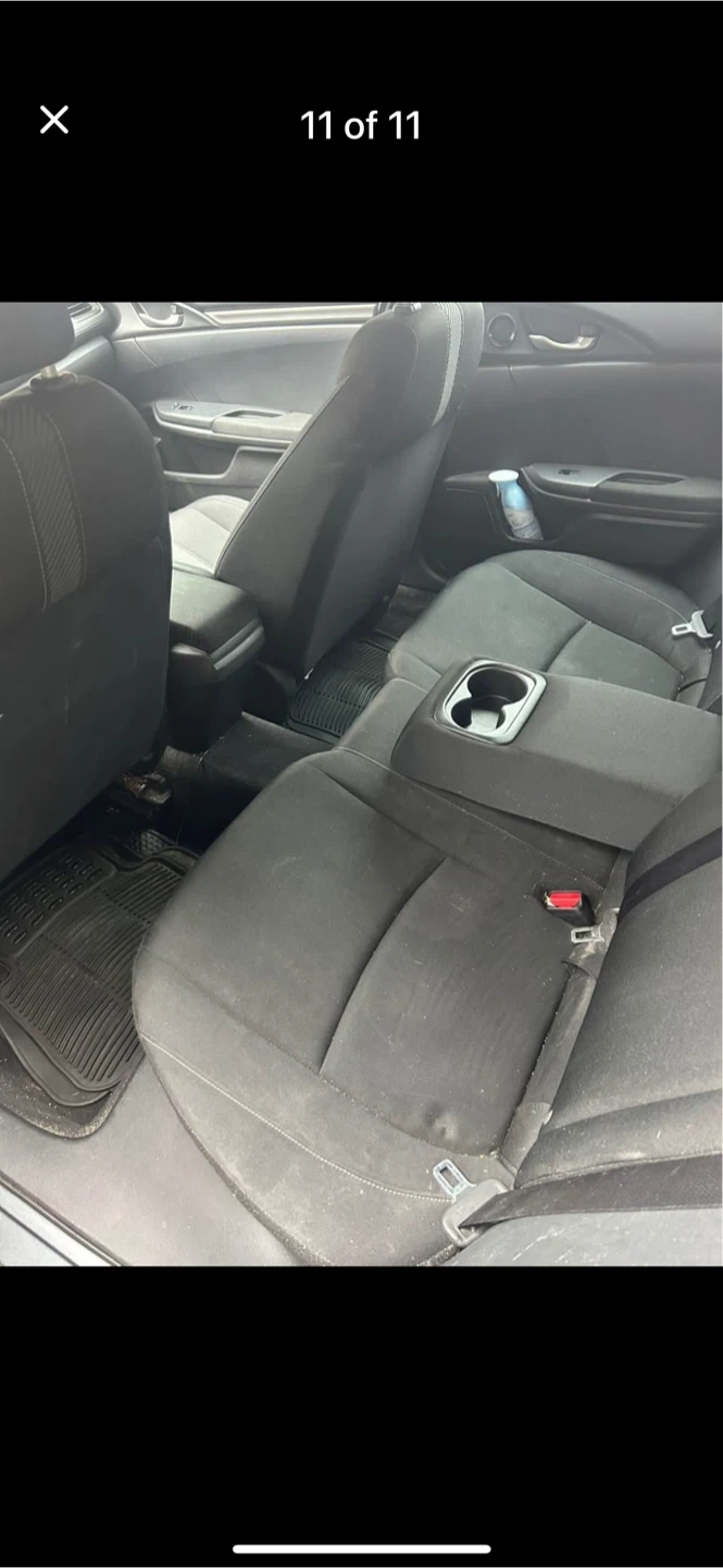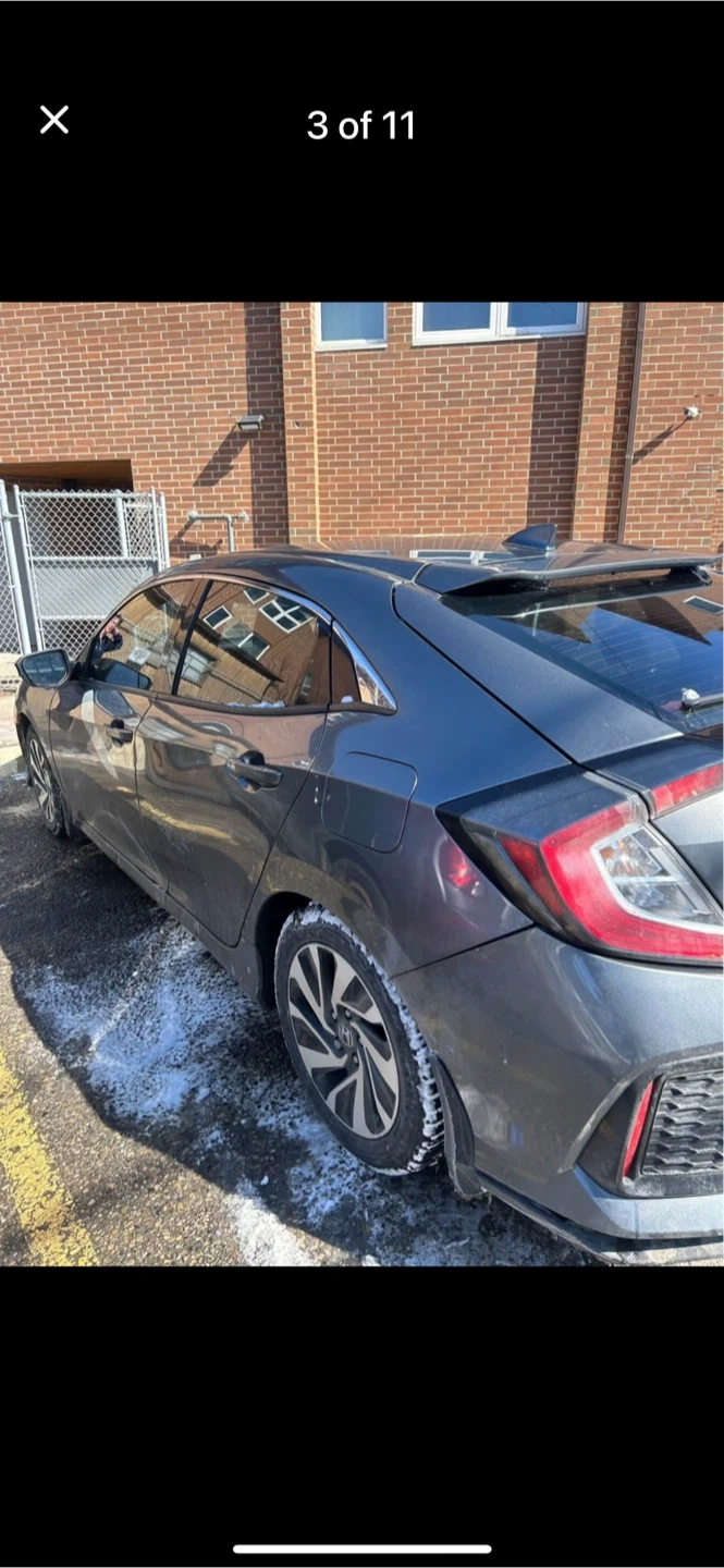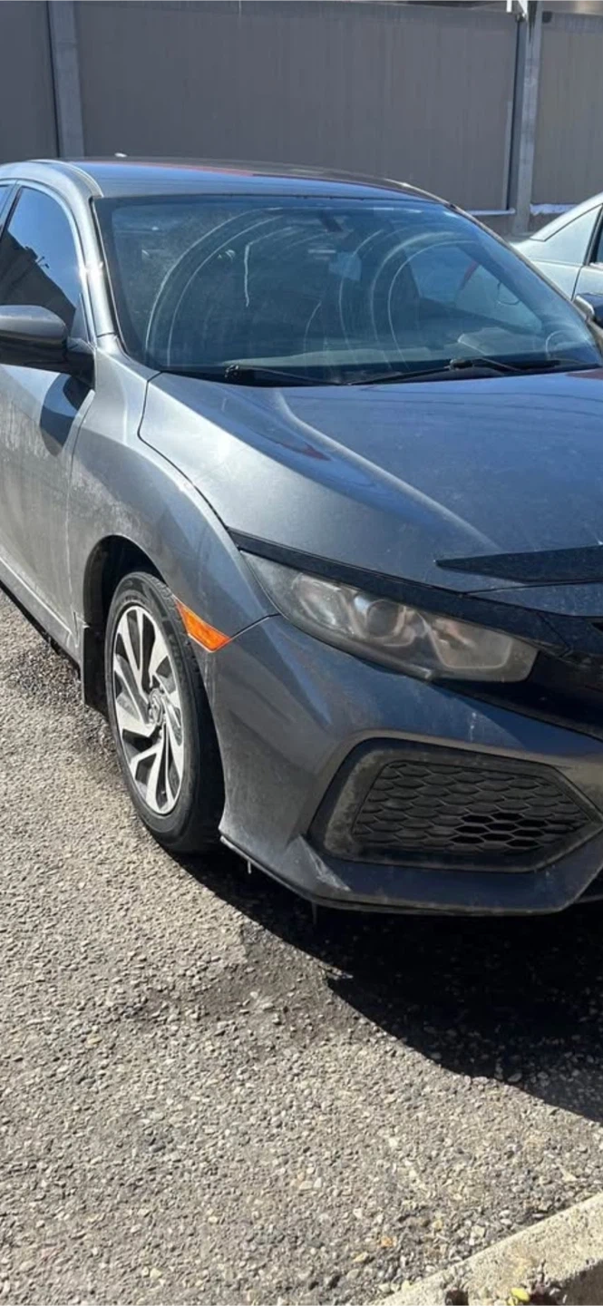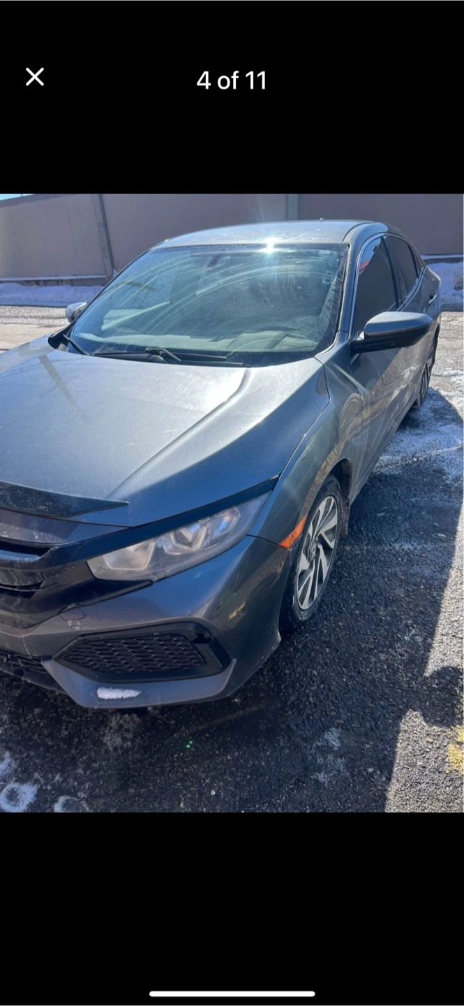 Grey ACTIVE Honda Civic sedan with black interior I has 329,000 kms Seats are fabric. It has a touchscreen infotainment system back up camera, New windshield, back and front new pads and rotors, 4 new all reason tires, just had an oil change, and it’s has a 6 speed manual transmission.needs right side staring knuckle arm bearing or maybe assembly Amazon is seeking for $300 of wrecking yard for $100 car runs and drive strong. This car offers comfortable seating for passengers.