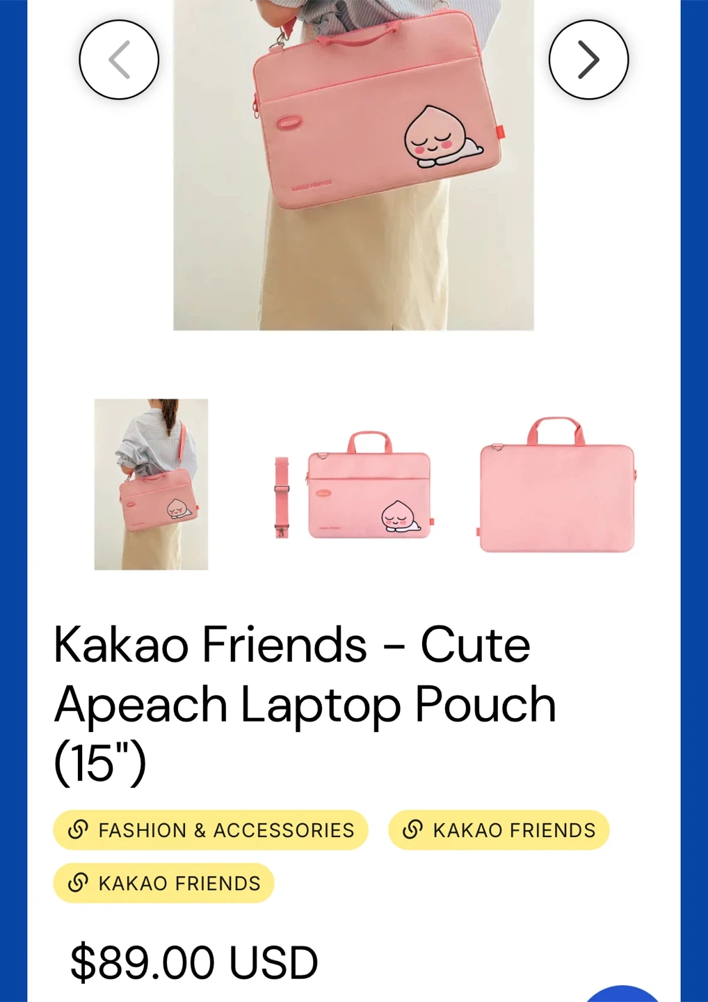 Selling a cute Korean Kakao Friends laptop bag featuring Apeach! It's pink and in great condition. Perfect for carrying your laptop and other essentials with its multiple compartments. My MacBook is broken so I don’t have a use for this anymore