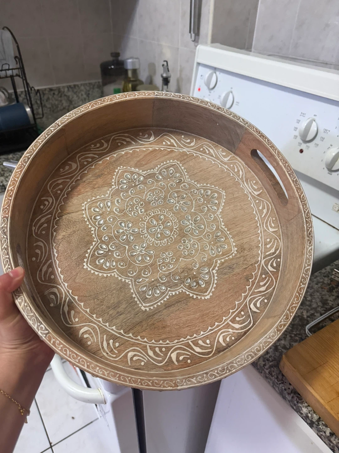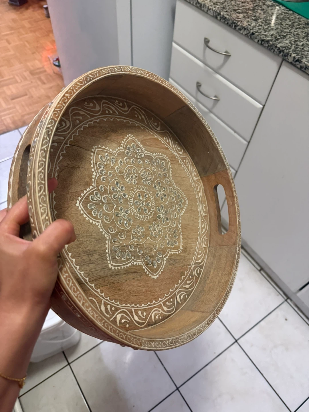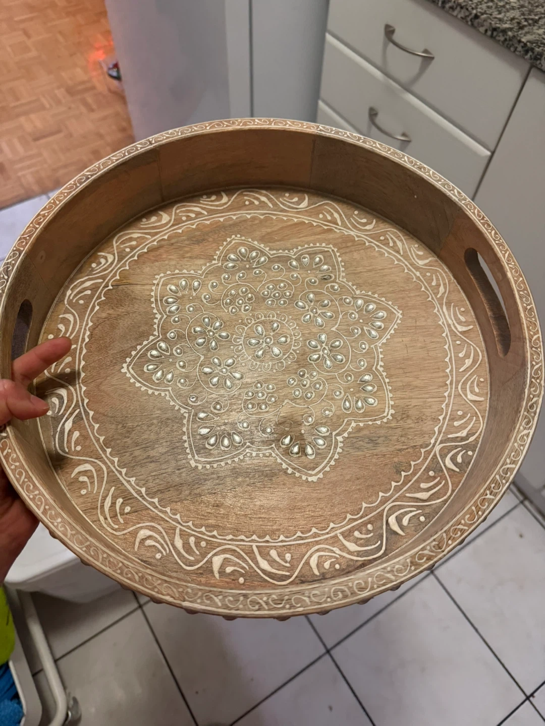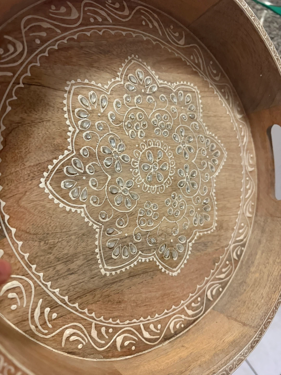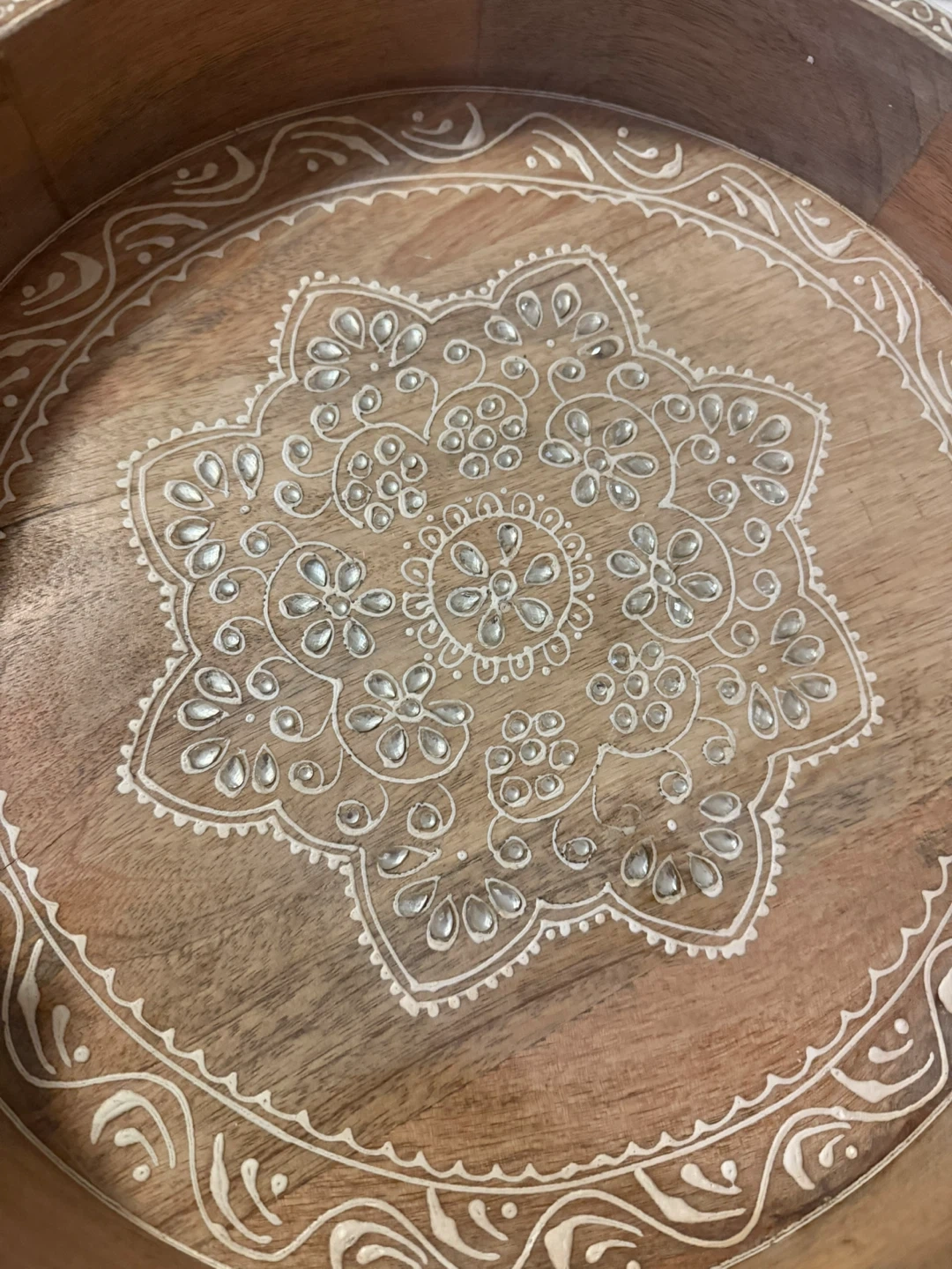 Buy & SellWooden decorative tray with mandala designWooden decorative tray with mandala design$25Round wooden tray featuring a white mandala pattern. It has built-in handles for easy carrying. This decorative tray is made of wood.ConditionNewWHERE TO MEETsherbourne stationView MapSELLERverifiedSounaN St. James Town1000+747 reviews0 chats·1 favorites·8 viewsSEND CHAT TO SELLERHi Souna! I’m interested in your listing.Hi Souna! I’m interested in your listing.Get the Karrot app to chatSign In to chat