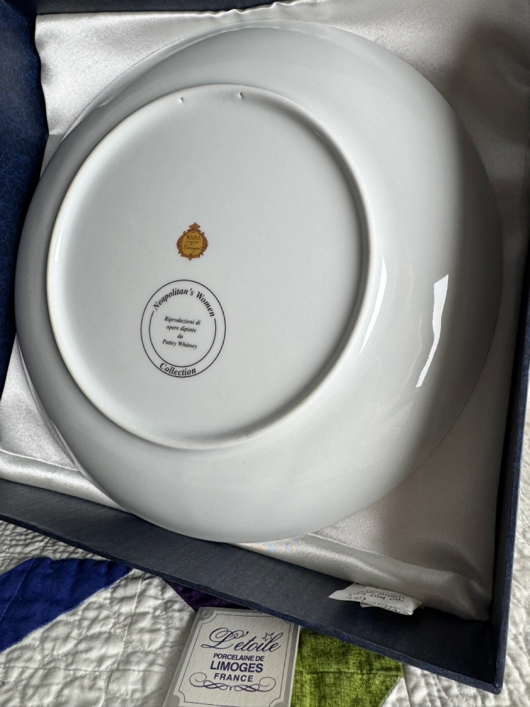 Decorated gold trimmed "Neapolitan woman" porcelain plate. Part of the Pastry Whitney Collection. Never taken out the of box. Open to offers. Expedited & Tracked Shipping available