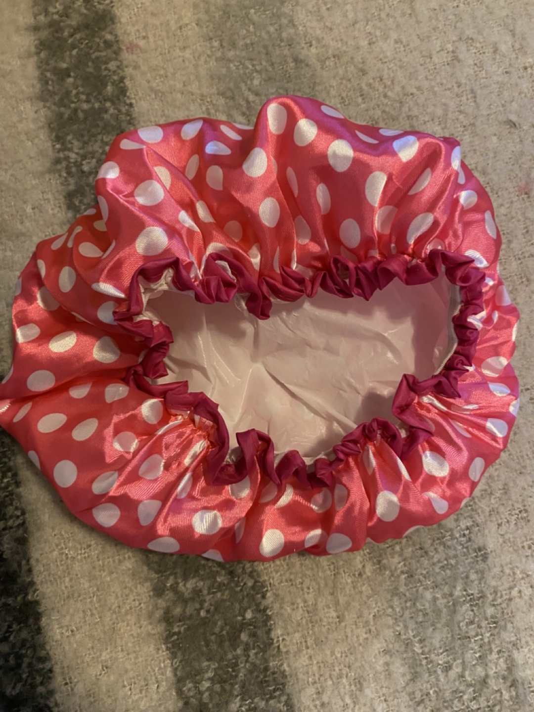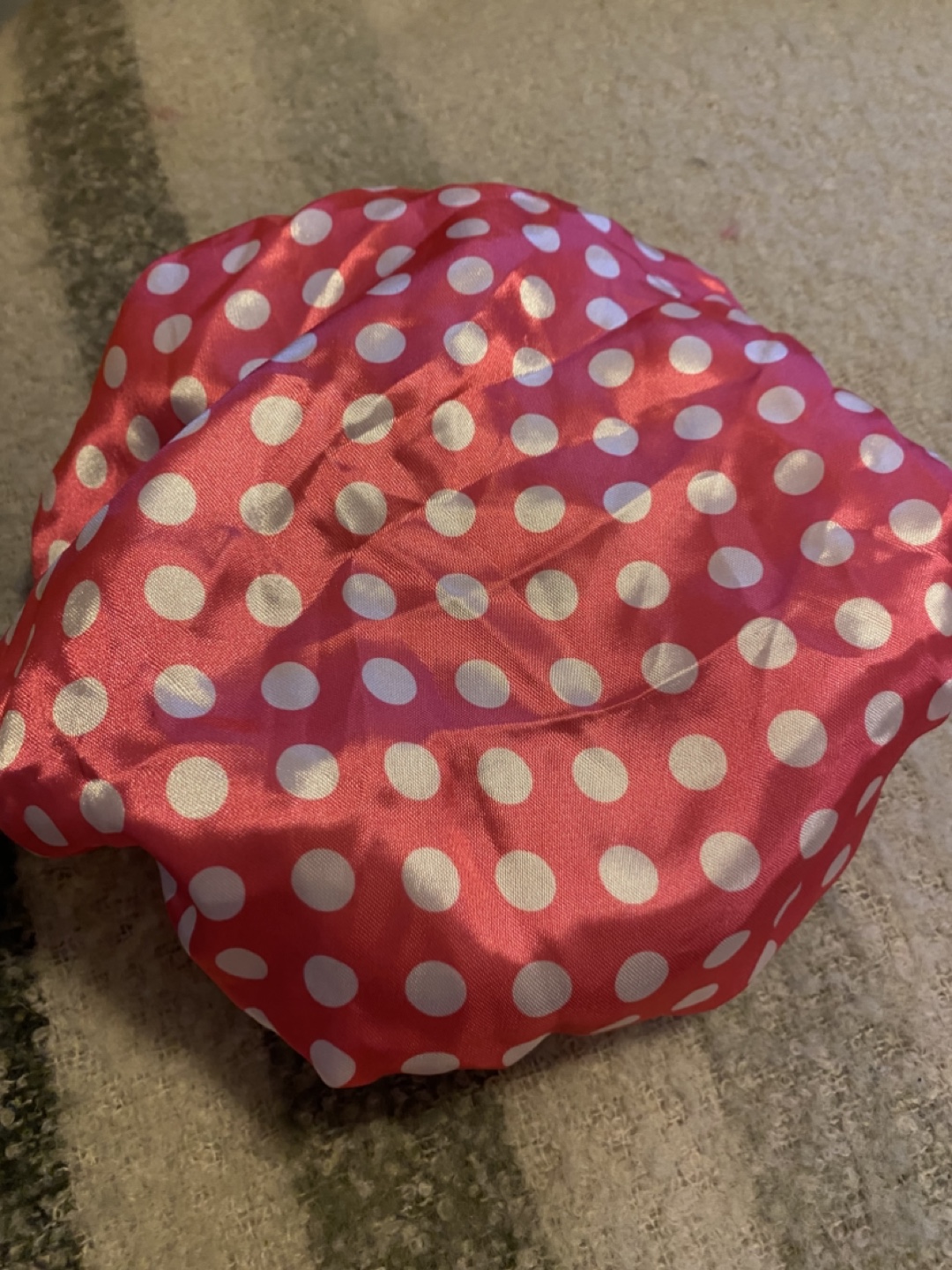 Selling a pink polka dot hair bonnet. It's in great condition and ready to help keep your hair protected while you sleep or relax or shower 🚿