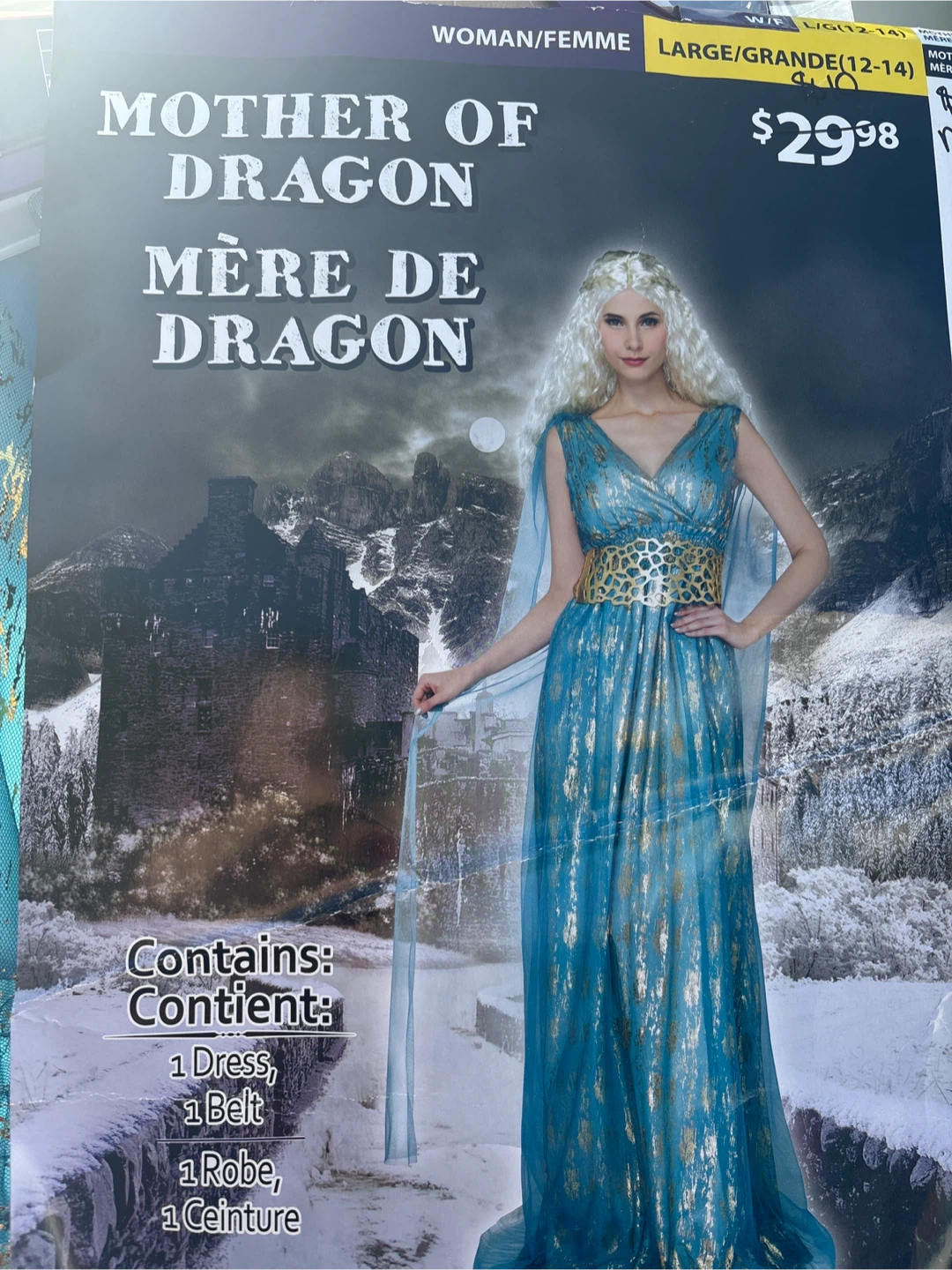 Selling a Mother of Dragon costume in size Large (12-14)! The costume includes a dress and belt.