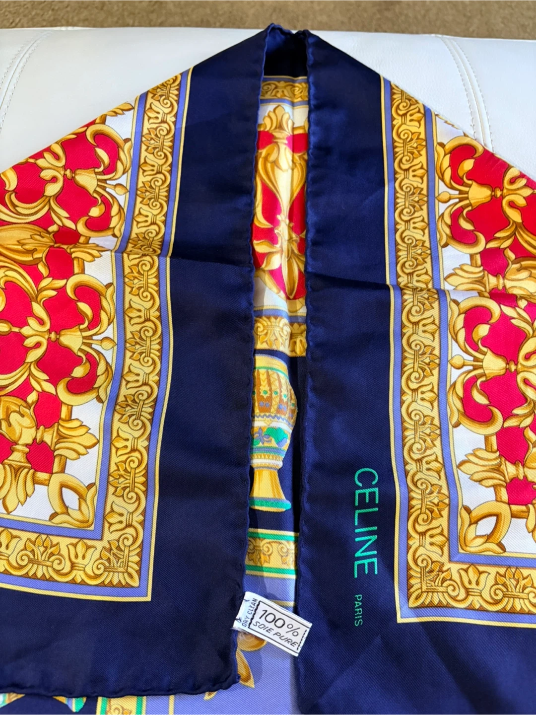 No box. Beautiful Celine Paris scarf up for grabs! It's made of 100% pure silk and has a lovely design. Perfect for adding a touch of elegance to any outfit