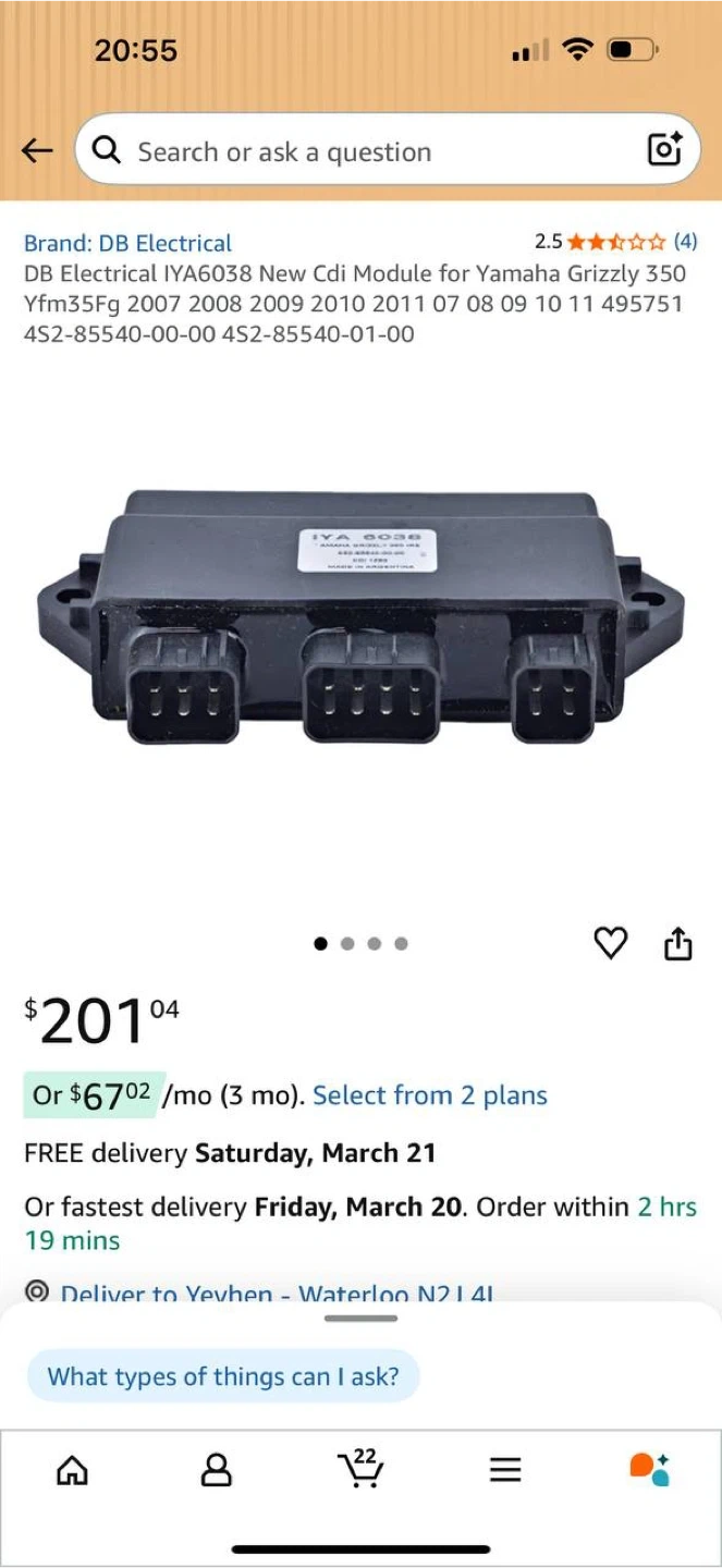 CDI ignition module for Yamaha Grizzly 350 (YFM35FG)