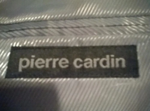 Genuine Pierre Cardin quality men's trousers. Features a subtle striped pattern, belt loops, button and clasp closure with zip fly, and 4 pockets. Straight leg fit and lightweight design. Pierre Cardin branding visible.