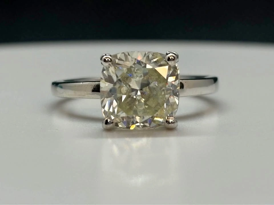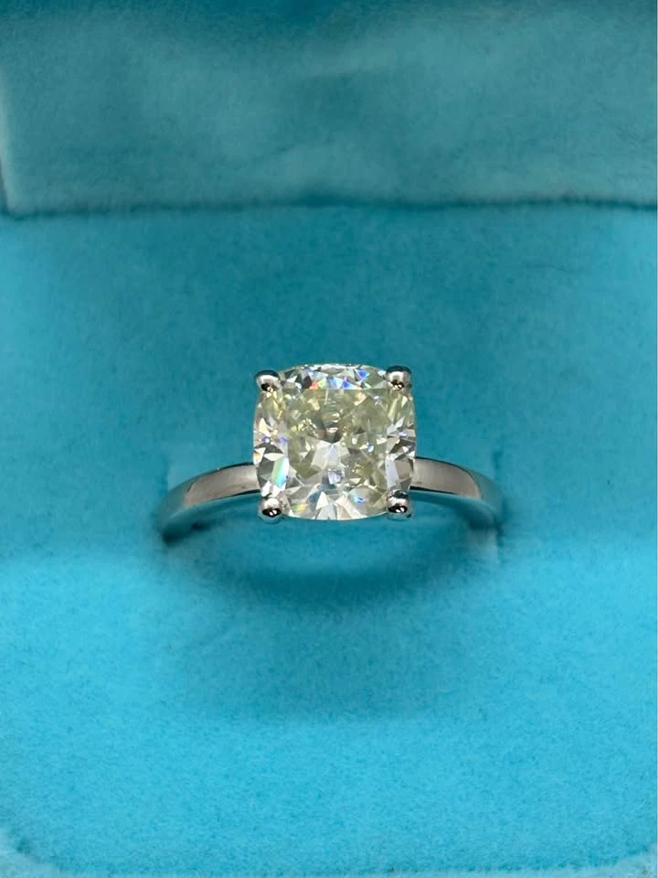 Brand New Ct: 3.11 Cut: cushion Clarity: VVS1 Color: ice off white Ring size: 7 Ring material: 925 silver Pickup only Comes with ring box. pink box also available LOCATED NEAR PEACH FESTIVAL (WALKING DISTANCE)