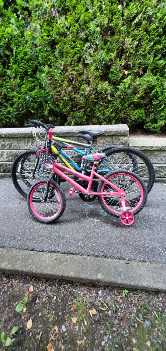 15Three bikes used once or twice; my daughter got scared and never tried riding again. There are also two used scooters in good shape and an air pump all of those for $200 obo