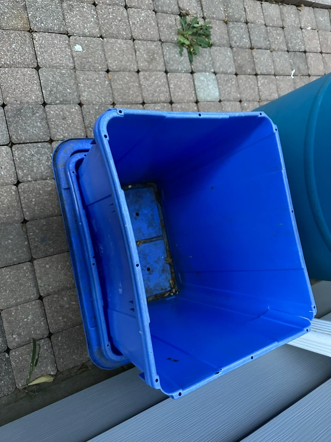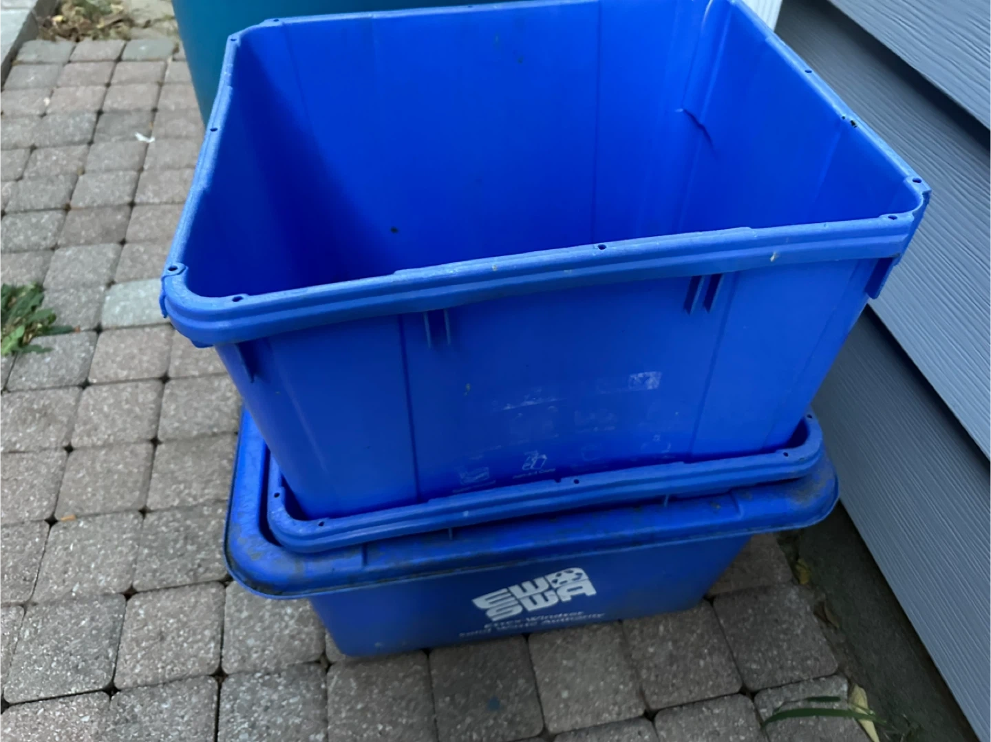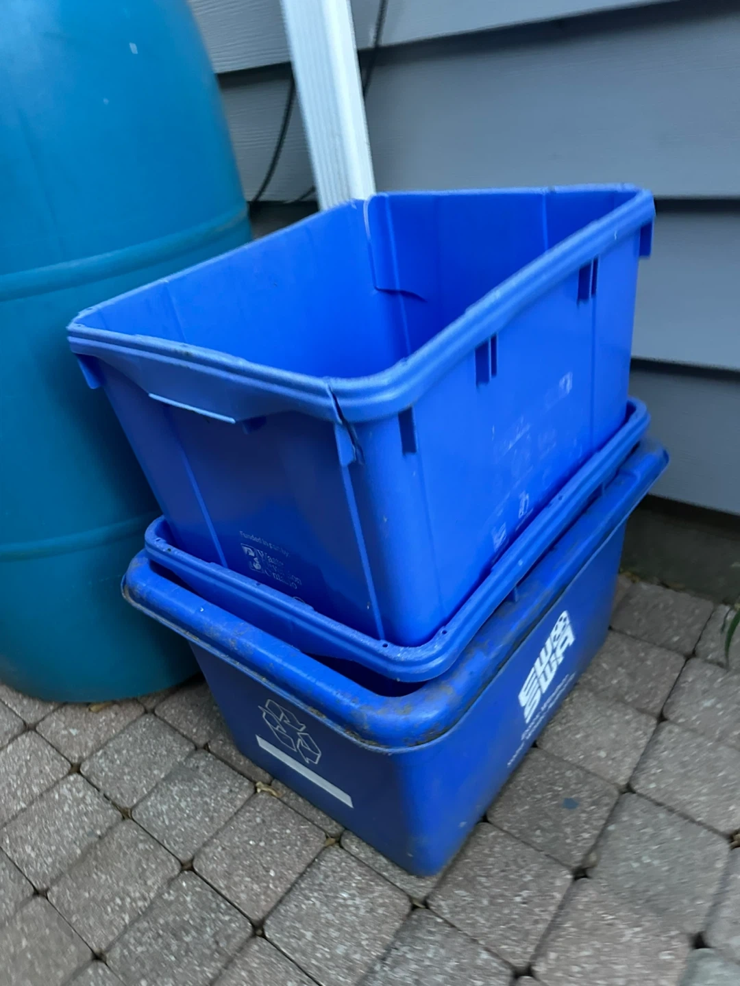 1015$ each 3 blue recycling bins, perfect for keeping your recyclables organized! They're in used condition but still have plenty of life left. Great for home or garage use