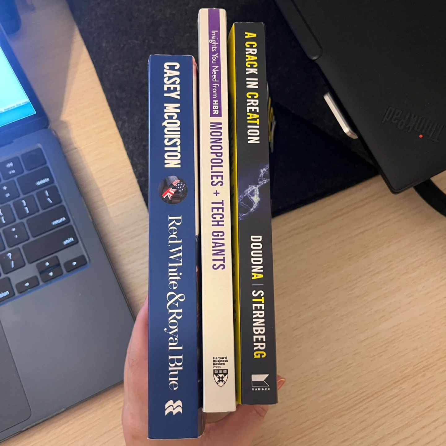 Selling a set of three books. Includes: - Insights You Need from Harvard Business Review: Monopolies + Tech Giants - Red, White & Royal Blue by Casey McQuiston (New York Times Bestseller, now an original movie) - A Crack in Creation: Gene Editing and the Unthinkable Power to Control Evolution by Jennifer A. Doudna and Samuel H. Sternberg Available to pick up/trade along ttc line 1