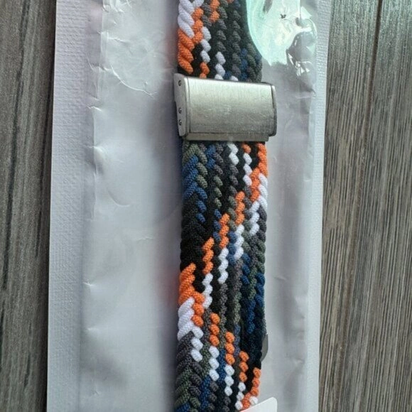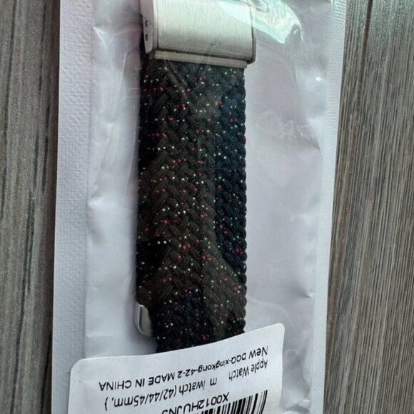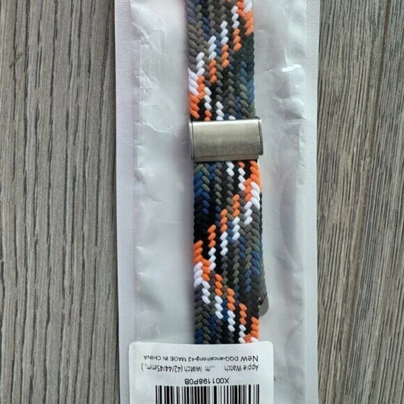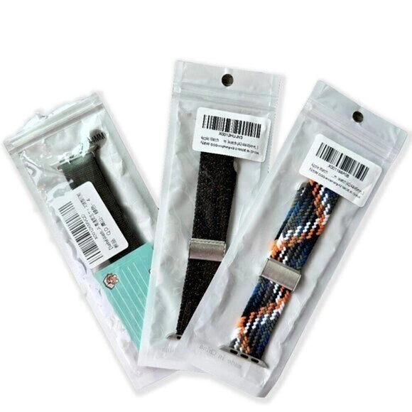 48Upgrade your Apple Watch with this set of three stylish braided nylon strap bands. All three are new and never worn — two are still factory-sealed, and one is opened but unused. Details: - Includes green, black, and multi-color braided fabric straps - Compatible with Apple Watch sizes 42mm, 44mm, and 45mm - Comfortable woven nylon material for all-day wear - Features an easily adjustable buckle-and-loop closure - Great for casual, sporty, or everyday looks These Apple Watch bands are perfect for switching up your style or gifting. Save by buying the bundle!