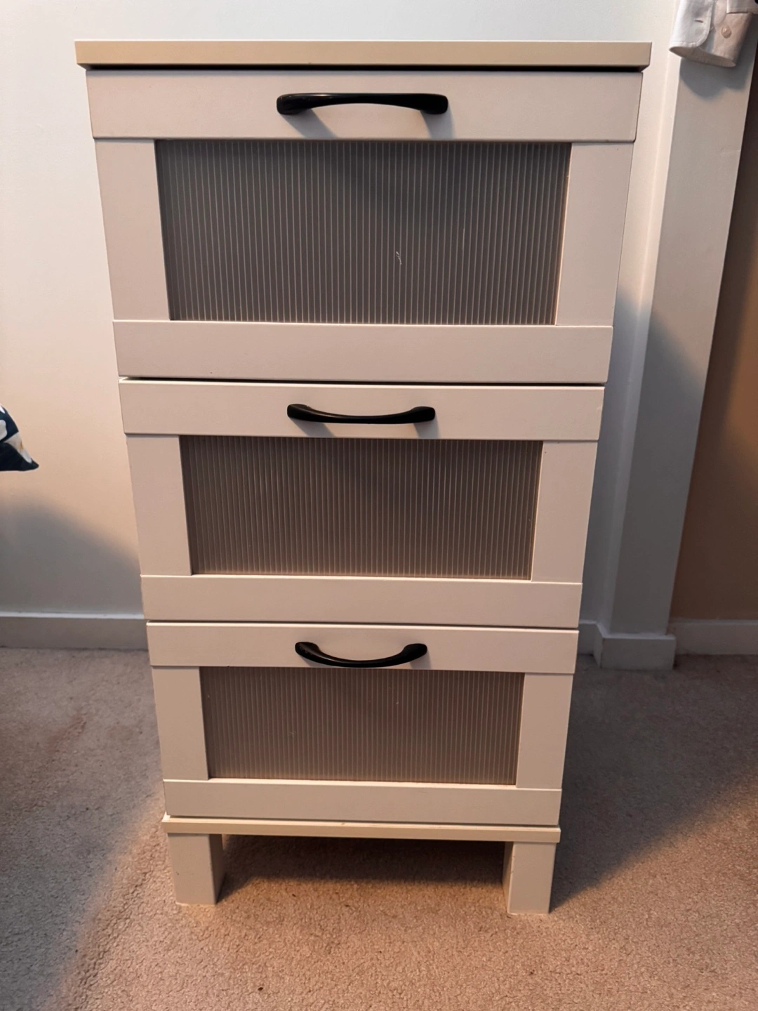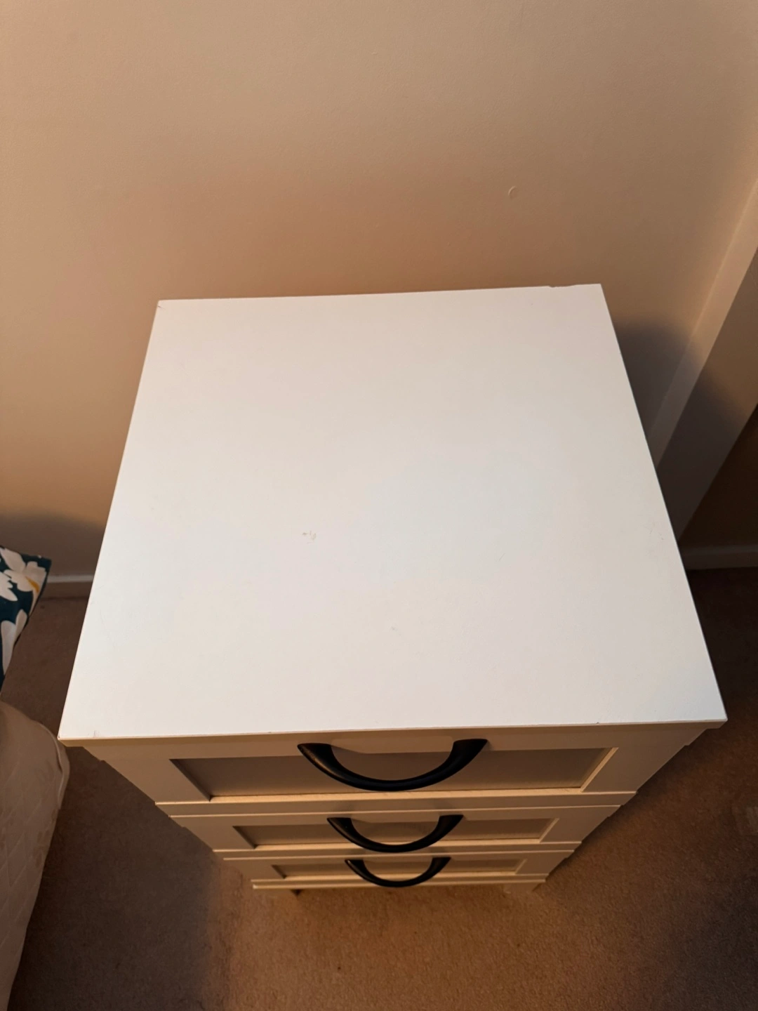 10White 3 drawer dresser $40. Very good condition. No scratches. Drawers move nicely but are not removable. I’m sure they are removable but not without tools and effort!