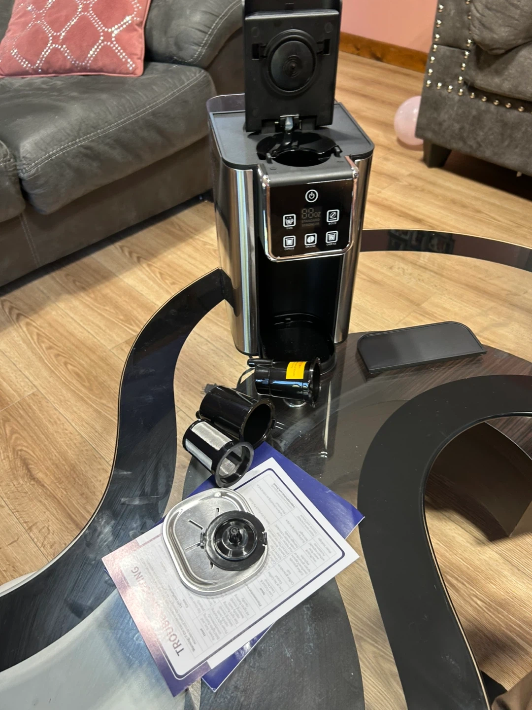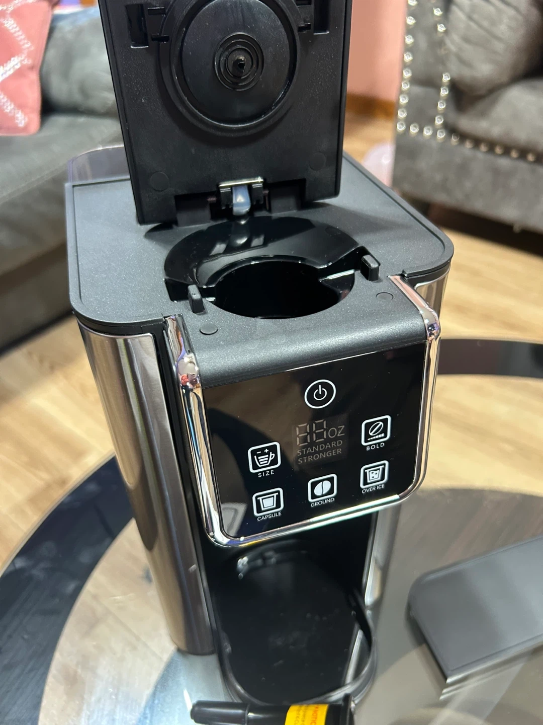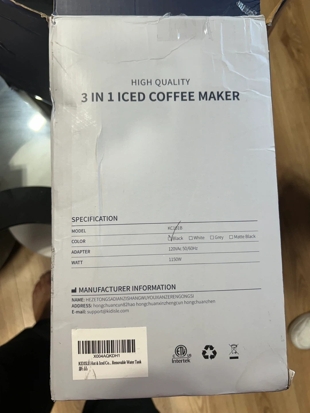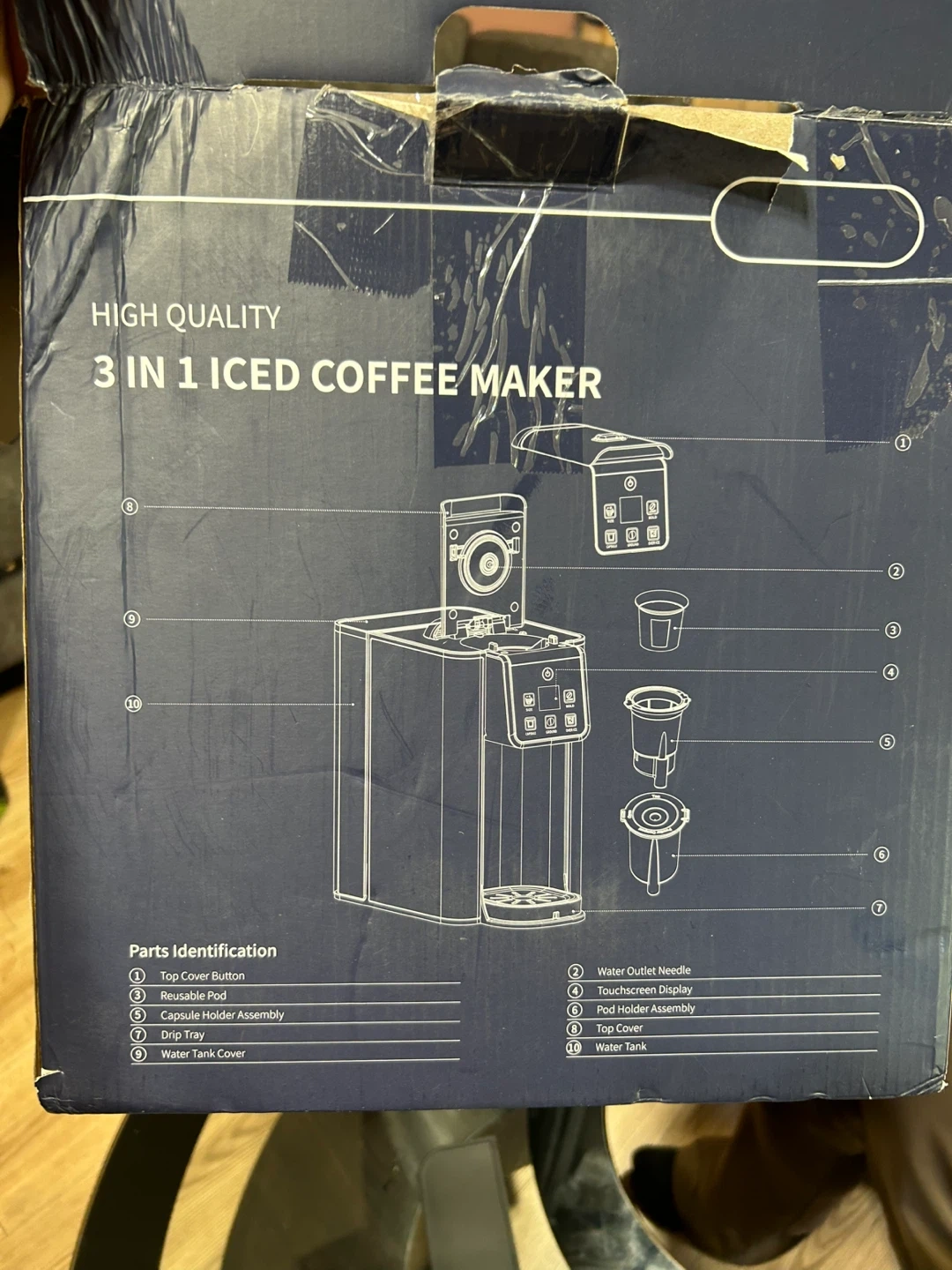 I'm selling a high-quality 3 in 1 iced coffee maker! It can brew a strong, intense cup of coffee or tea and easily make iced coffee. It features a 50oz removable water reservoir and has a power supply of 120V/50/60Hz. The power is 1150W. It comes with all the parts shown in the pictures!