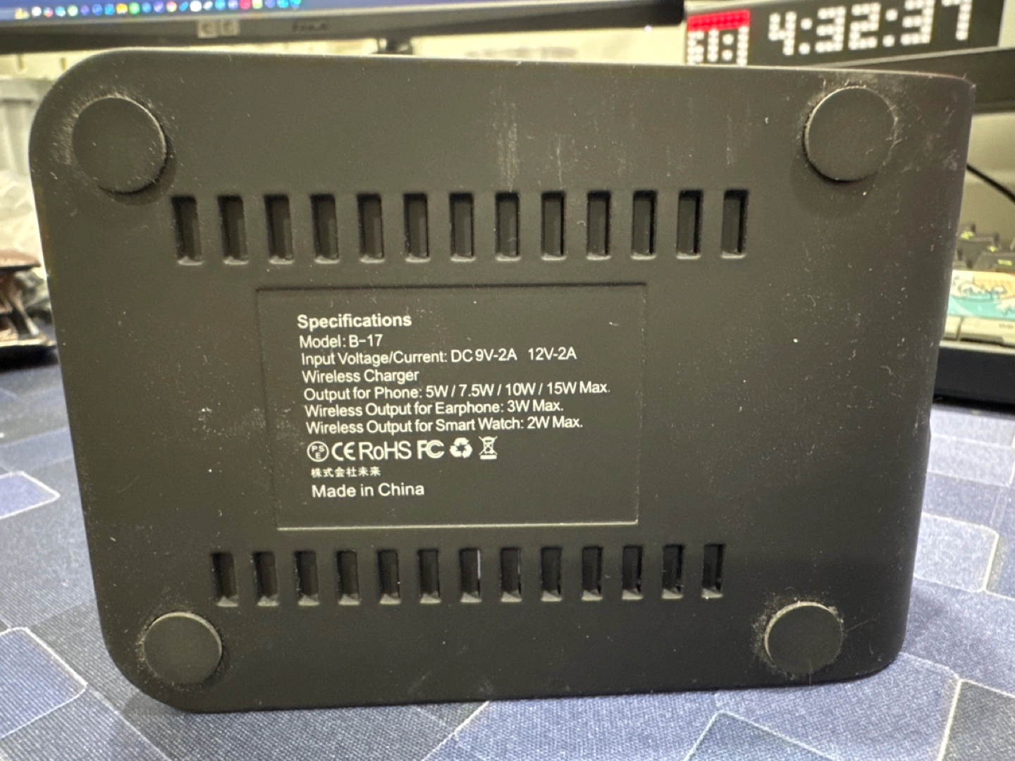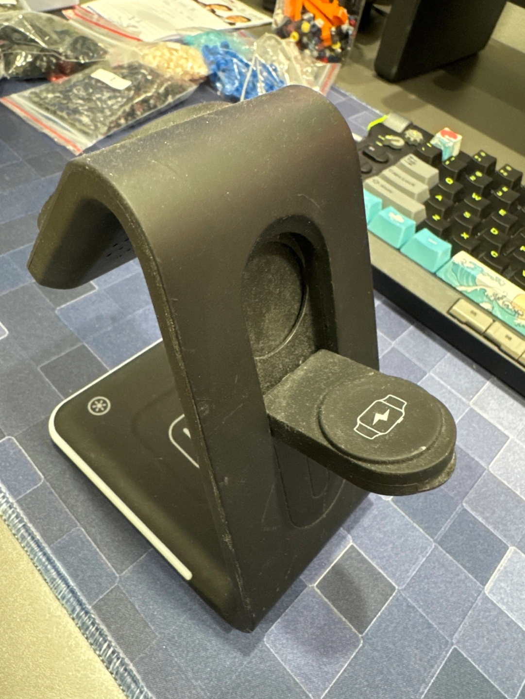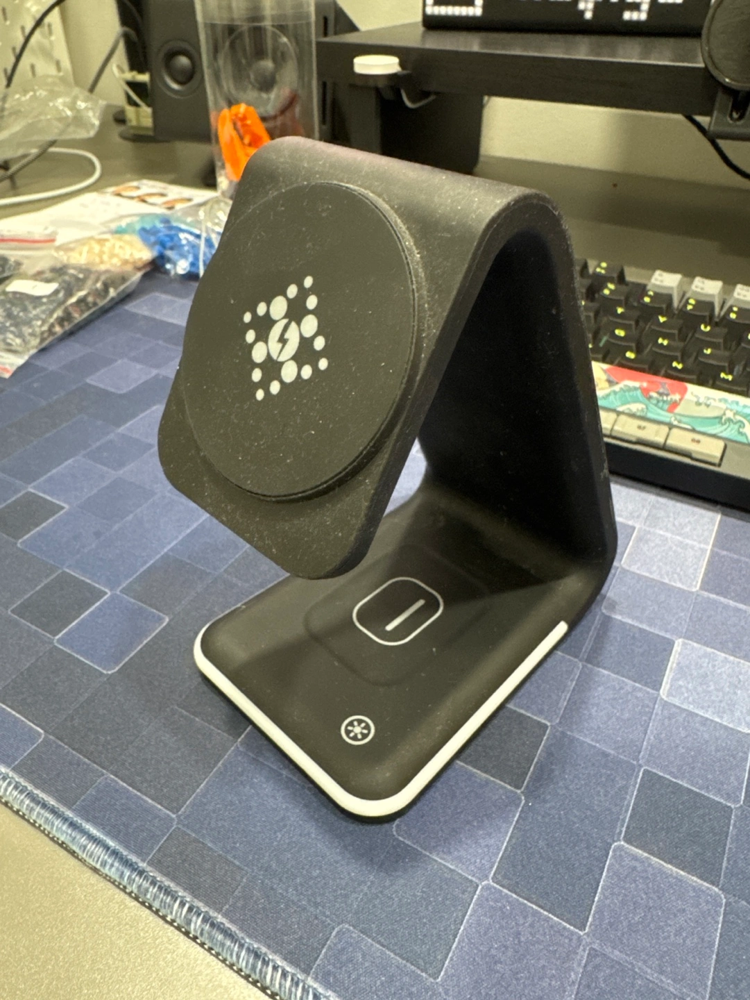 32Black 3-in-1 wireless charger. Charges phones, earbuds, and smartwatches for Apple devices. Model B-17.