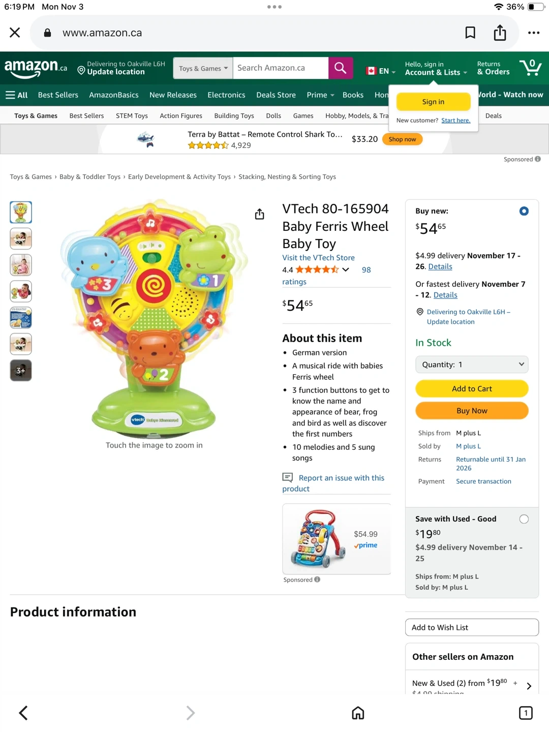 26PICK UP ONLY IN OAKVILLE ON CALLAGHAN CRESCENT. $15 FIRM for ALL. In excellent working condition. For ages 3 months and up. Interactive and educational. SEE PHOTOS FOR SPECIFICATIONS. Clean. Smoke and pet free home.