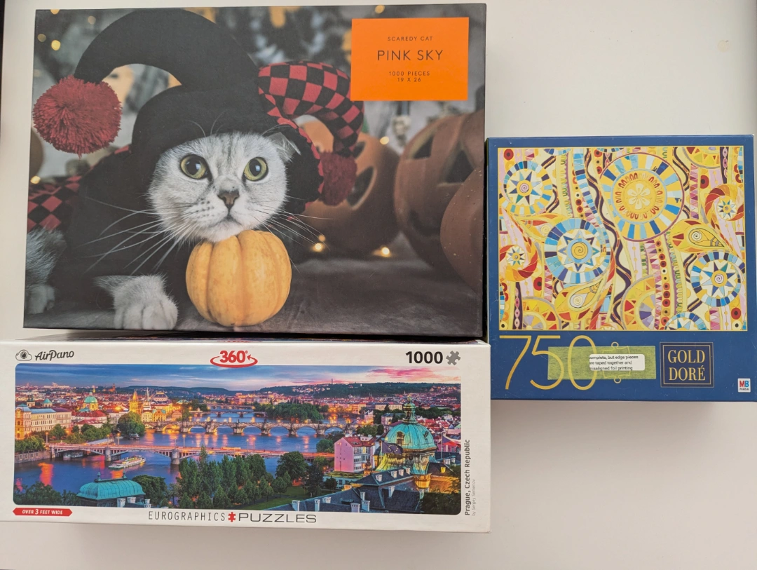 3 Jigsaw Puzzles - Scaredy Cat, Prague, Gold Dore #freecycle