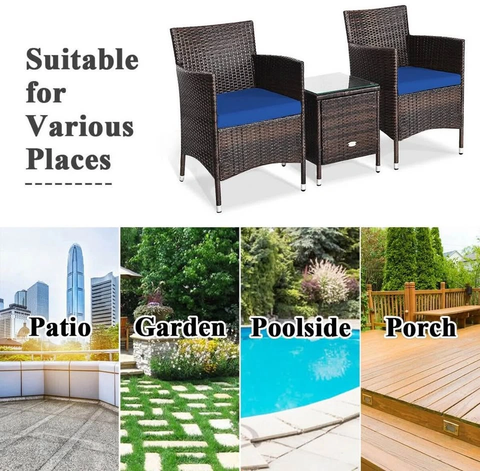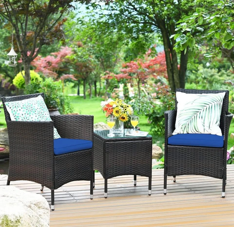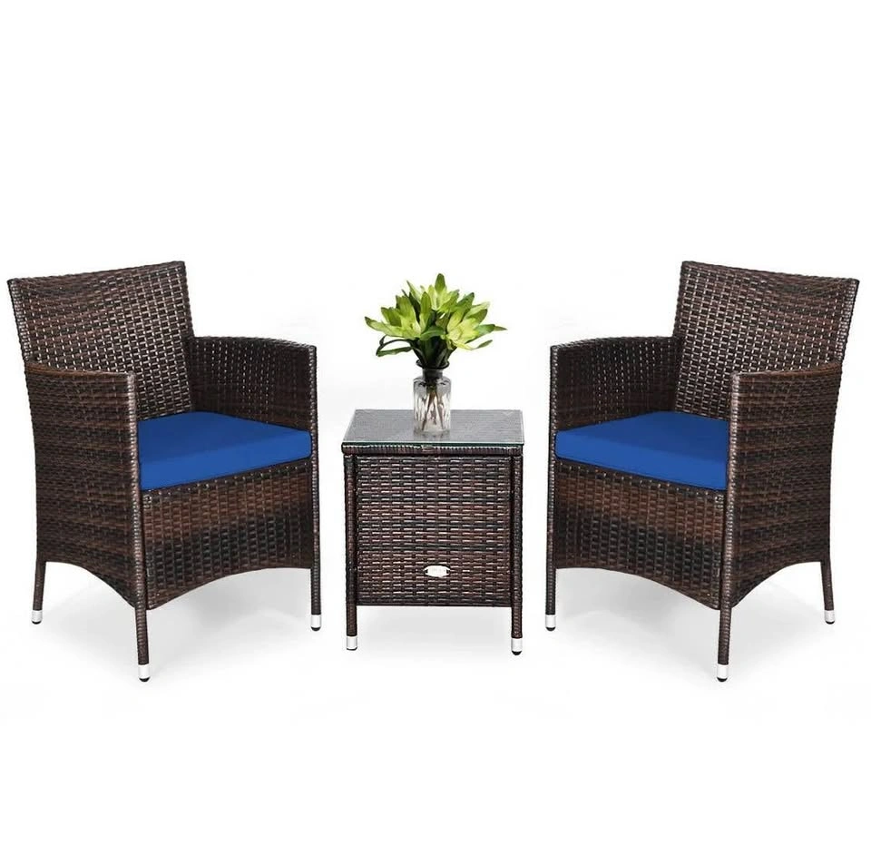 3 Pcs Patio Furniture Set Outdoor Wicker Rattan Set, Navy#2422