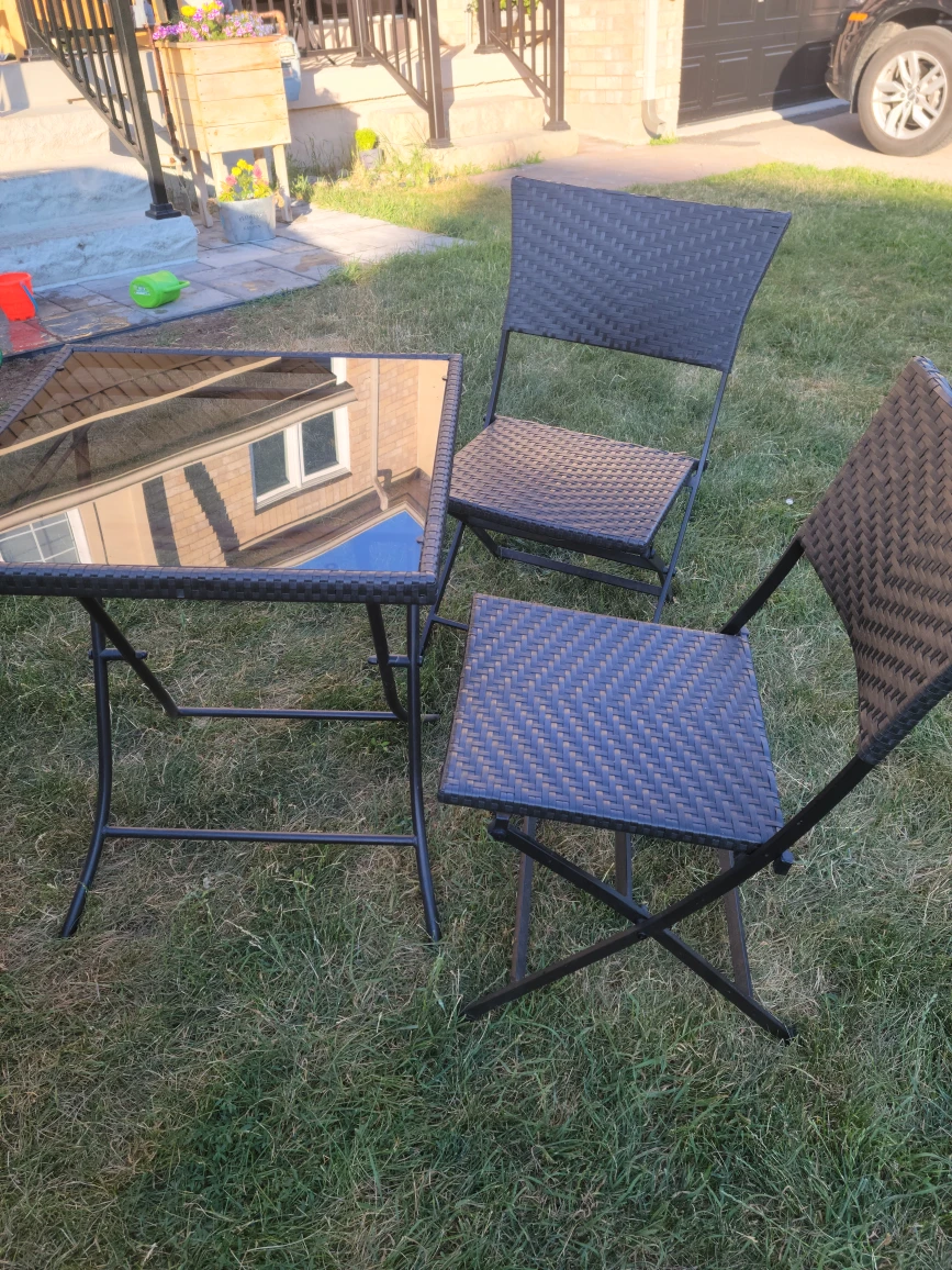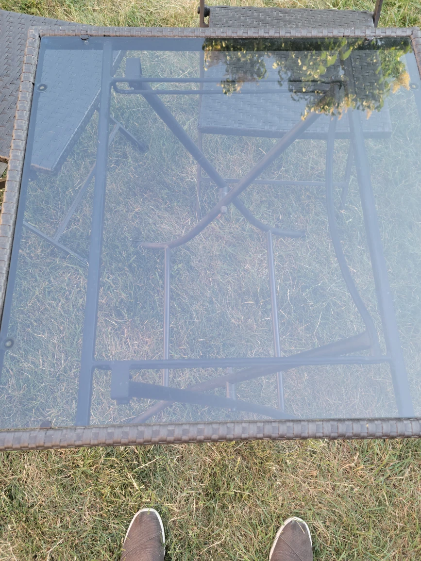 236price is firm. used some minimal wear and tear see pictures of wicker on the chairs. some fine scratches on the table.