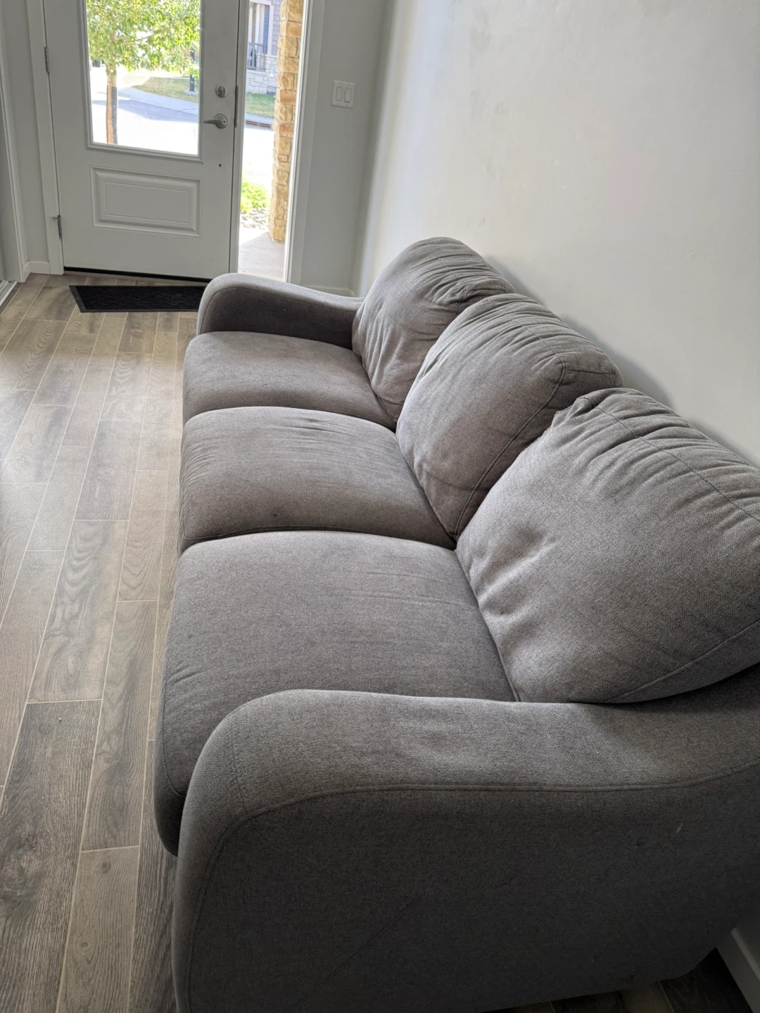 Power reclining sofa-Taupe Faux Leather – Excellent Condition