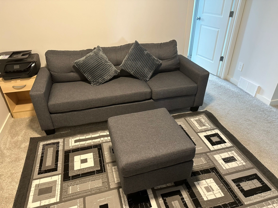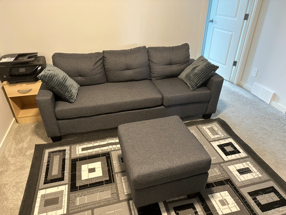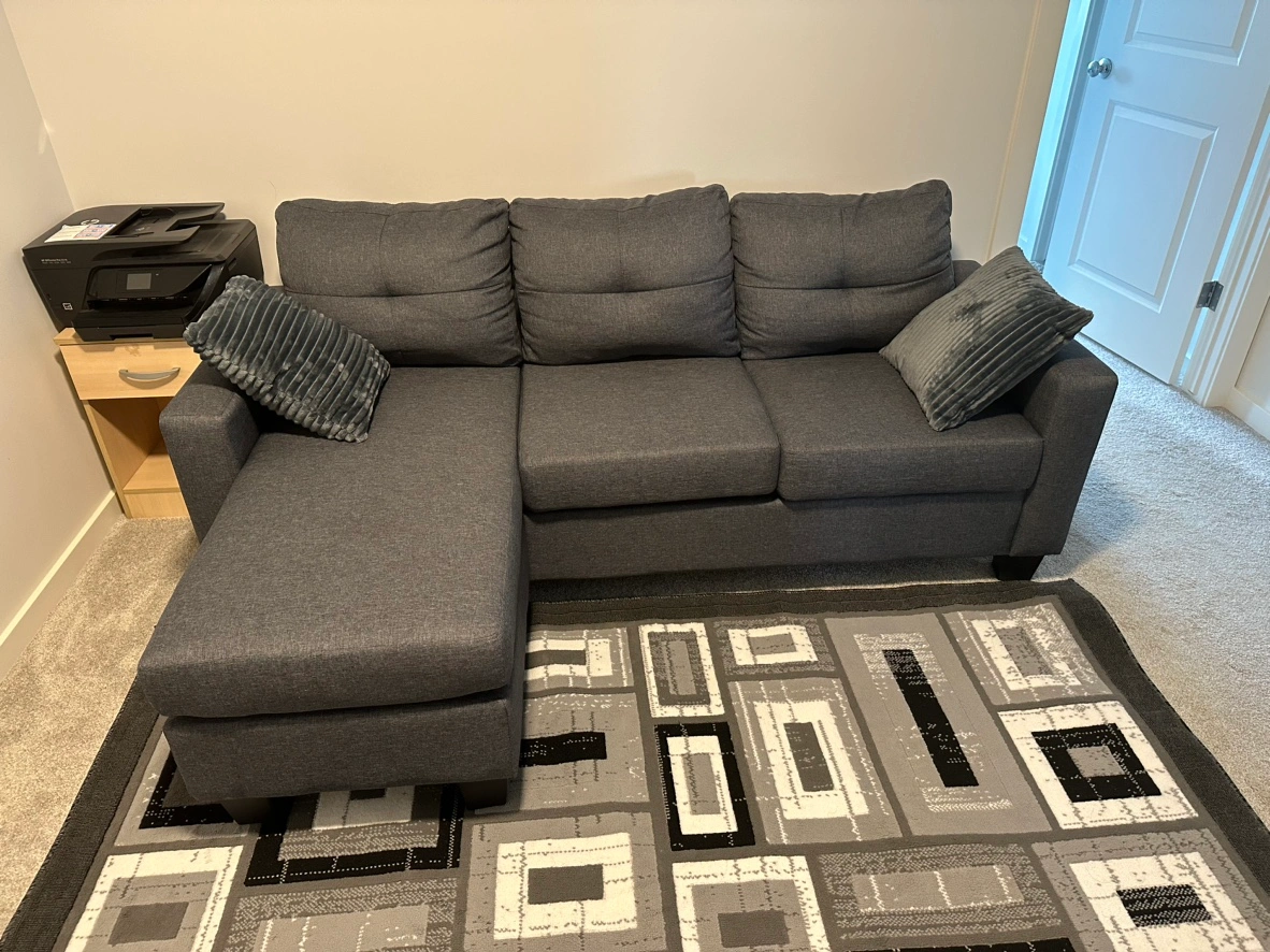 Highlights Modern Corner Sofa Set: Elevate your space with a chic sofa set. Contemporary design and breathable linen fabric create a modern look. Versatile and spacious, it suits any room size. Functional Design: Maximize your comfort with our modular sectional sofa. It includes an ottoman and a large seat, ideal for seating three people simultaneously. Use the matching ottoman to create a comfortable lounger or as a footstool base. Excellent Comfort: Experience ultimate comfort with our L shaped couch. The high-density foam cushions and linen-touch polyester fabric provide breathability and easy maintenance. Customize your convenience with the movable backrest and seat cushions. Selected Material: Upgrade your living space with this robust grey 3 seater sofa. With a solid wood frame and rubberwood legs for stability. Pet/ smoke free home Used as a loft sofa( rarely used) Bought 10 months ago