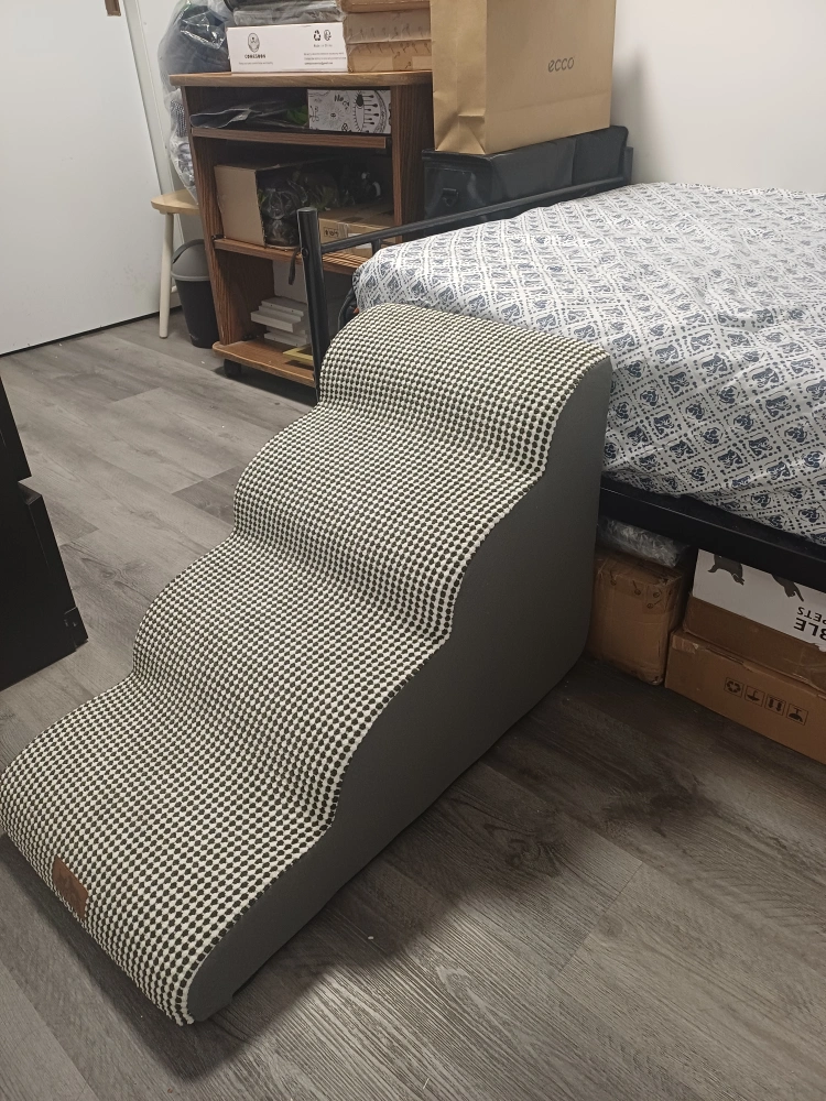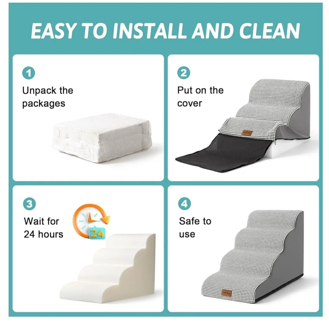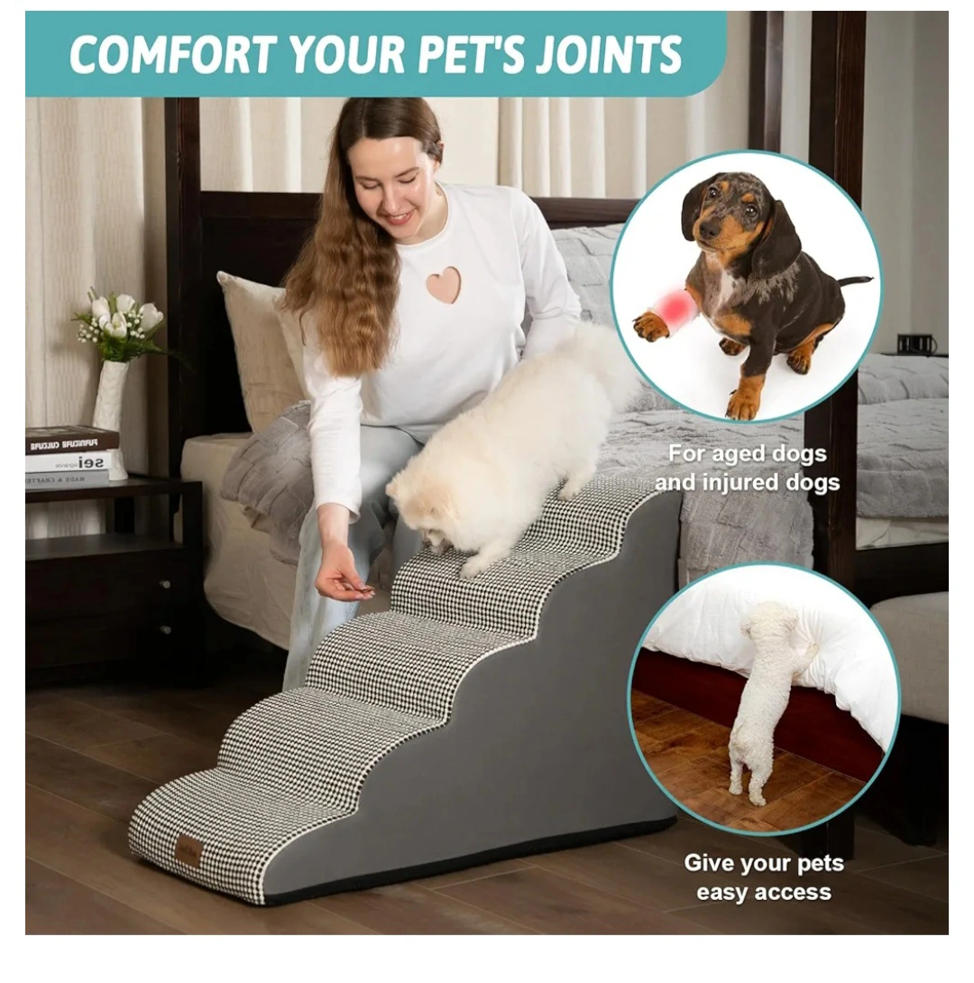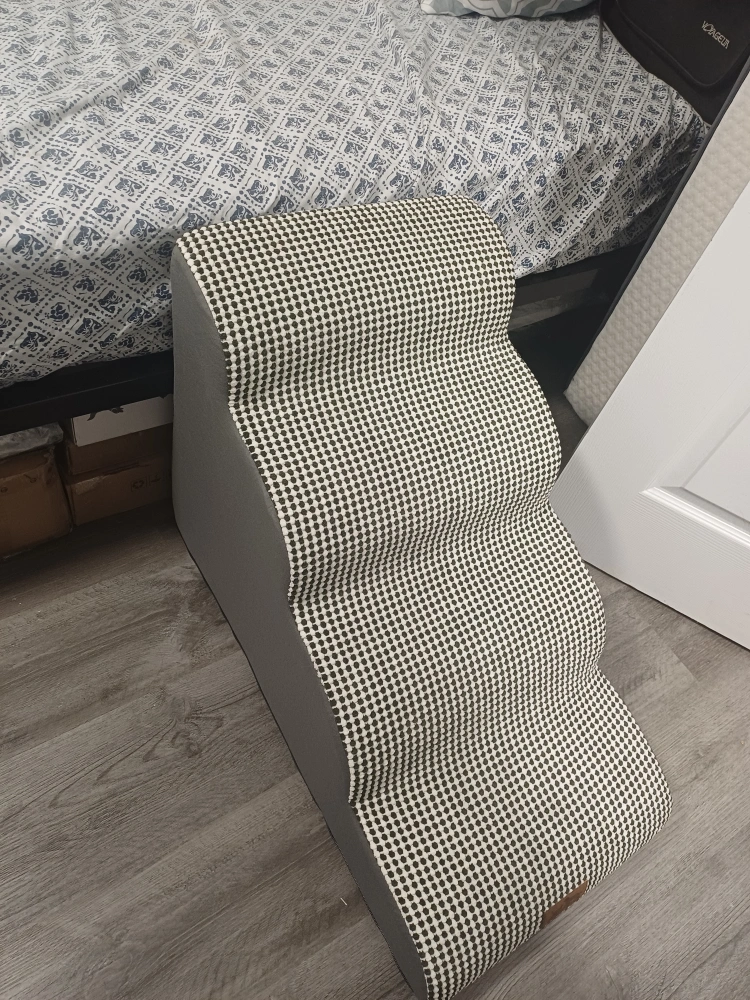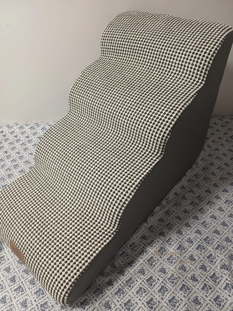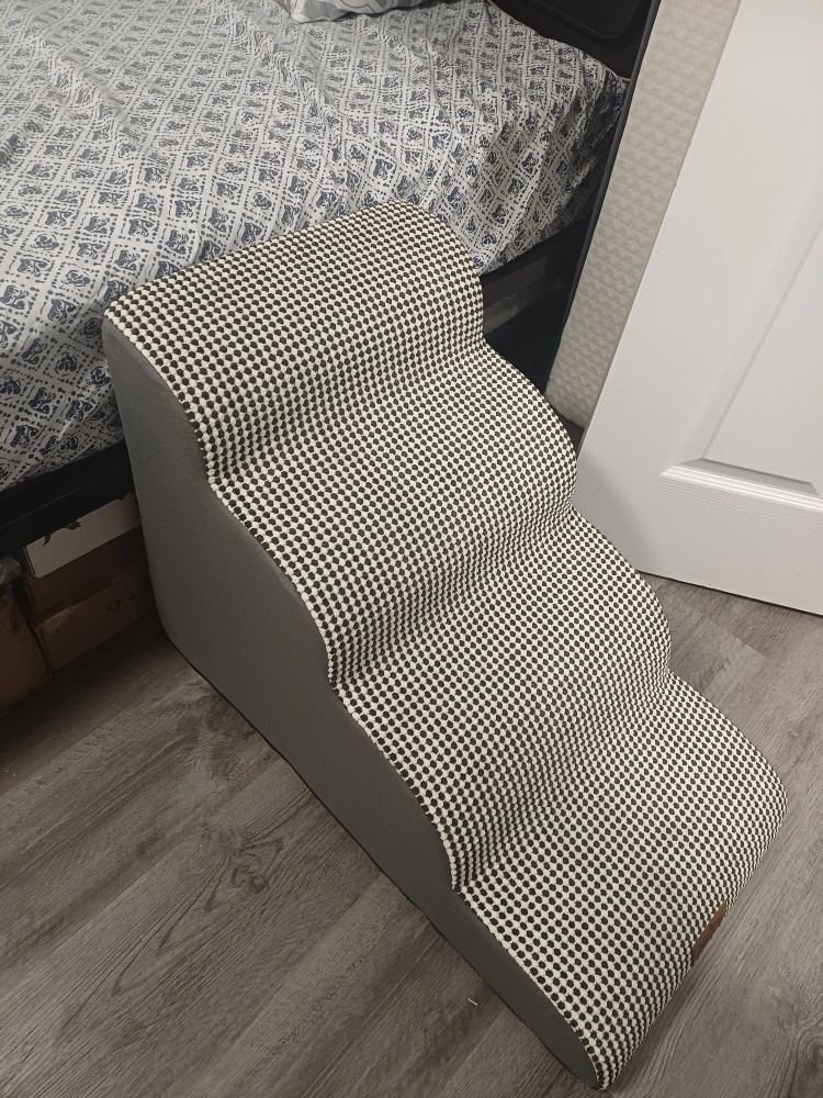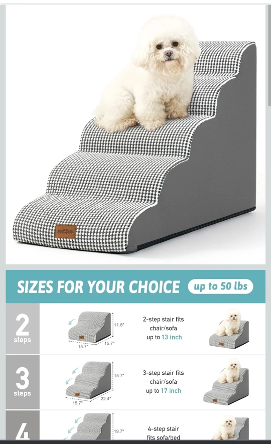 101Selling a brand new...Cozy Kiss 4-step pet stair, perfect for helping your furry friends reach their favourite spots! It's designed for small dogs and cats, supporting pets up to 50 lbs. The stairs are 19.7 H with leak proof cover 15.7x28.3 inches tall and 22.4 inches deep, making them ideal for reaching chairs or sofas. The stylish design will fit right into your home!